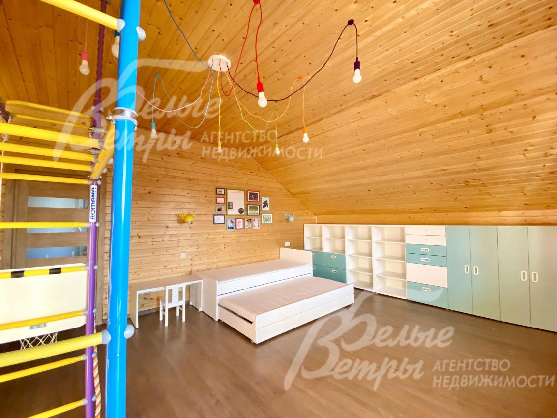Мебель, оборудование: установлен качественный кухонный гарнитур белорусской фабрики ЗОВ со встроенной бытовой техникой (варочная панель, вытяжка, духовой шкаф, печь СВЧ, посудомоечная машина, холодильник), большой раздвижной стол и 8 стульев. В гостиной угловой диван, журнальный стол, система хранения, напольный светильник. В холле большой комод, зеркало. В постирочной стиральная машина. В детской комнате кровать с дополнительным выдвижным спальным местом, столик и стульчик, система хранения, детский спортивный комплекс. В комнате большой шкаф, двуспальная кровать с анатомическим матрасом Askona, прикроватные тумбочки. В главной спальне туалетный столик, в гардеробной комнате система хранения, напольное зеркало;