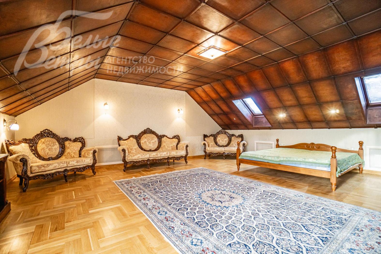 Большая спальня на мансардном этаже с санузлом и гардеробной