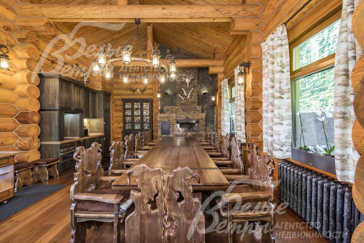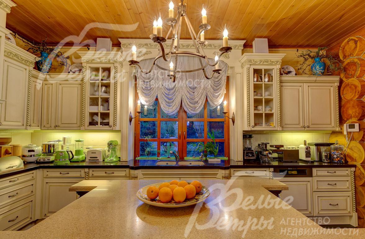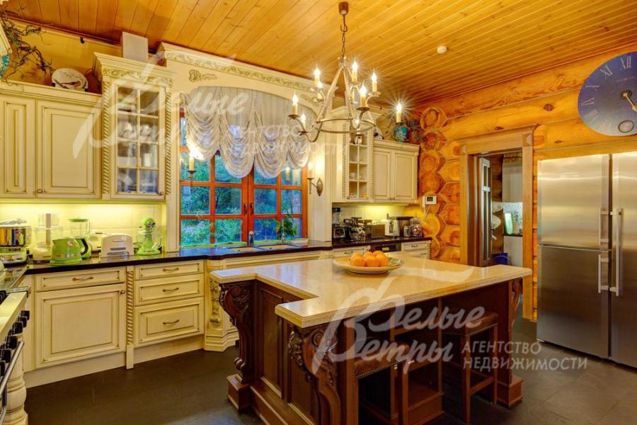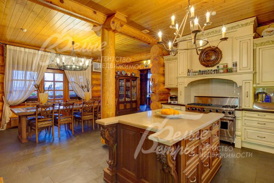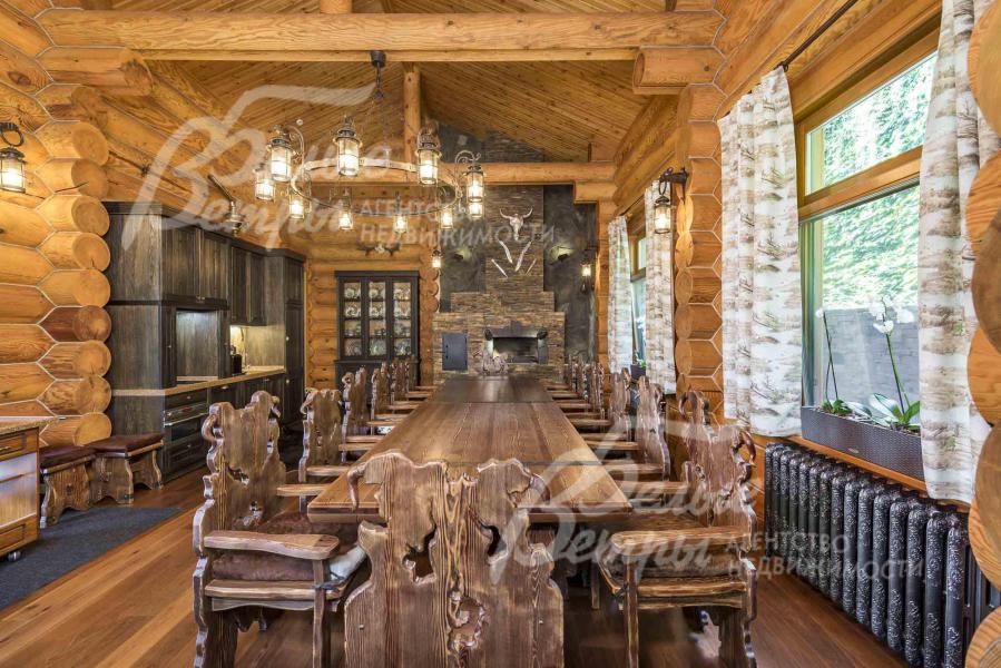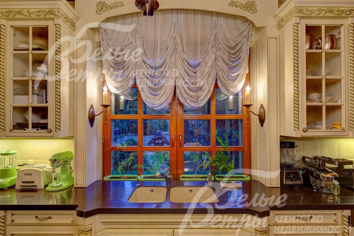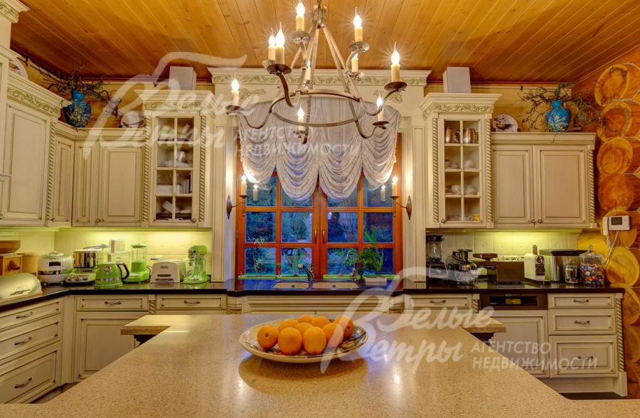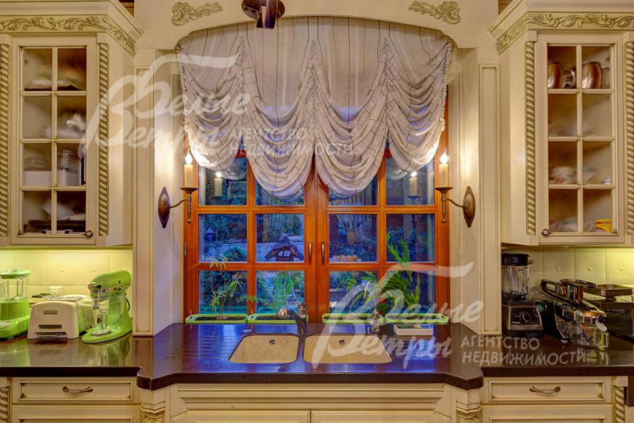 Мебель, оборудование: Усадьба полностью укомплектована и обустроена всем необходимым для жизни и получения удовольствия. Мебель либо антиквариат, либо сделана на заказ, в основном из дуба, шпонированного ценными породами (обеденный гарнитур– из дуба, шпонированного корнем тополя; кабинет – из дуба, шпонированного корнем туи; т.д.). Бренды: мебель от Hickory Chair (США) и Theodore Alexander в жилых комнатах, кухонный гарнитур фирмы Downsview Kitchens (Канада), встроенная техника Miele на кухне и в постирочной, профессиональная плита фирмы Viking (США) с 6-ю конфорками, грилем и двумя духовками, морозильная камера двойная Liebherr, вытяжка Gutmann, печь с мангалом, казаном и коптильней и вертелом электрическим в СПА-доме. Кованые светильники и люстры фирмы Robers (Германия).