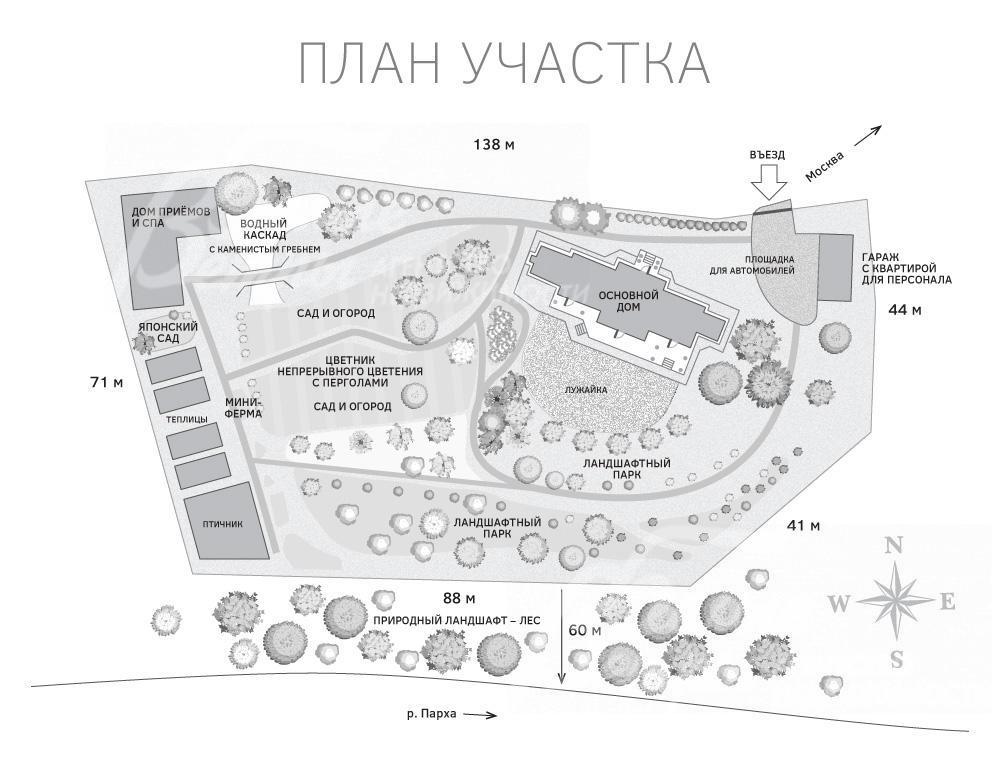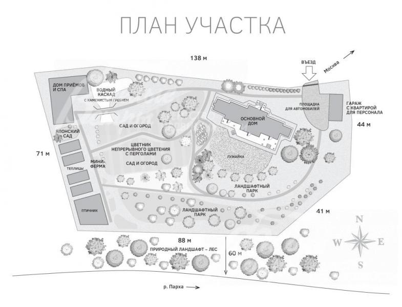 Тип участка: парковый, с роскошным ландшафтом, перепадом высот и с выходом к реке
