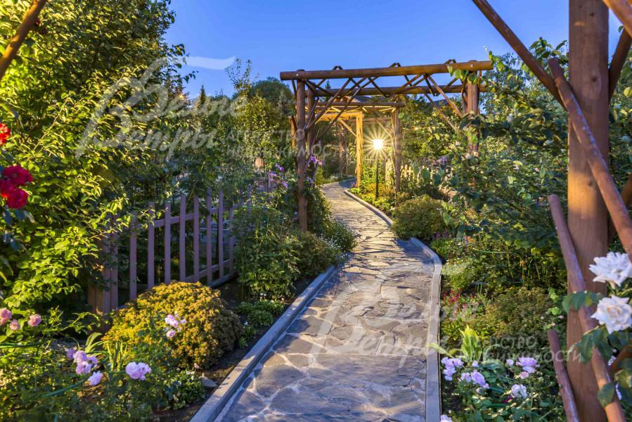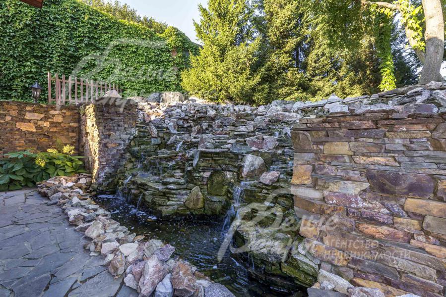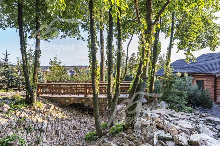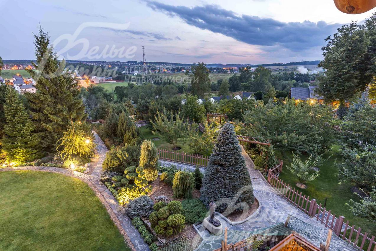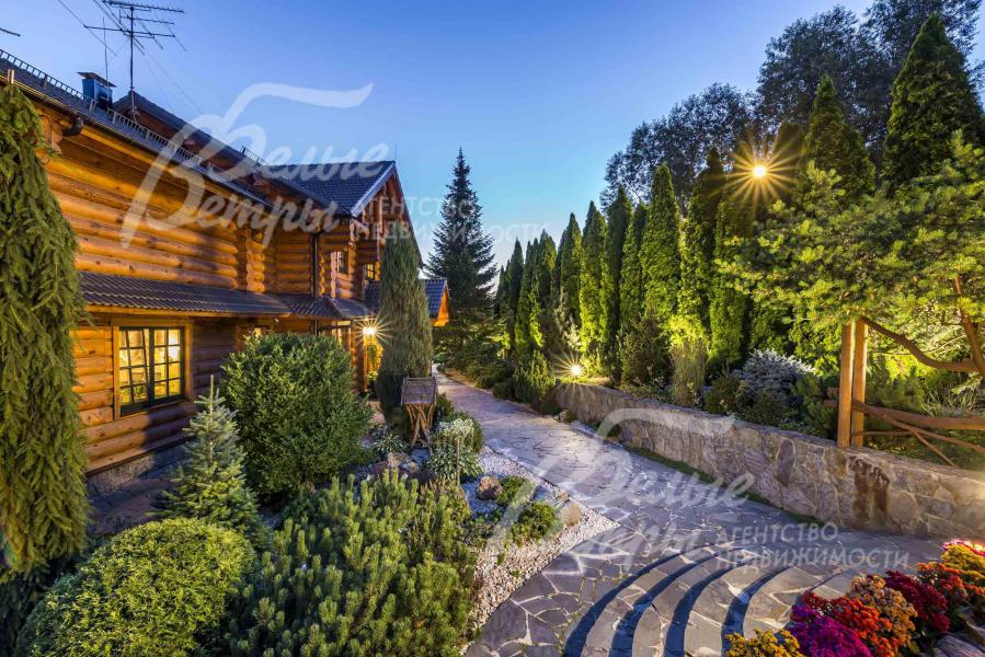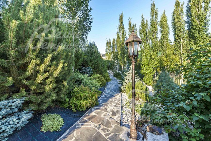 Благоустройство участка: законченный ландшафт: коллекция из нескольких сотен разнообразных хвойных (включая крупномеры) со всего мира, привезенных из лучших питомников Германии. Коллекция карликовых высокогорных растений. Плодоносящий сад (включая южные растения - абрикосы, черешня, айва, груши, яблони, смородина и др.) с цветниками непрерывного цветения. Японский сад. Природный овраг выложен каменистым гребнем, с мостом и завораживающим водным каскадом. Мини-ферма с огородами, теплицами и птичником. Оригинальное освещение и автоматический полив всего участка