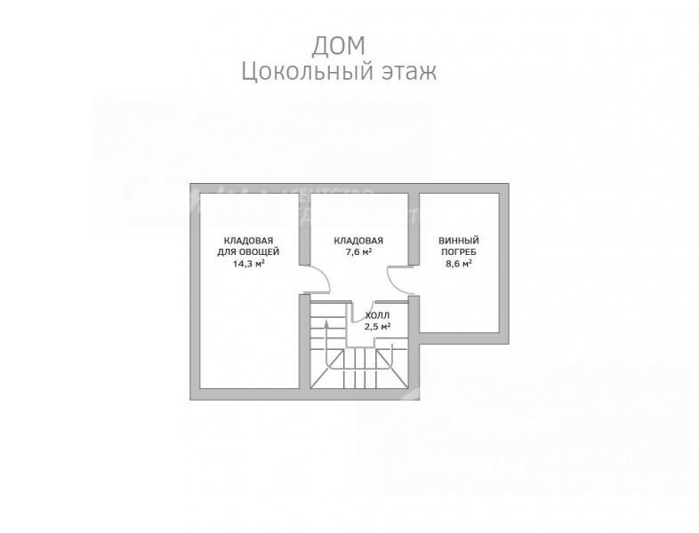 Цоколь: Холл кв.м, кладовая 8 кв.м, кладовая для вина 9 кв.м, кладовая для овощей 14 кв.м