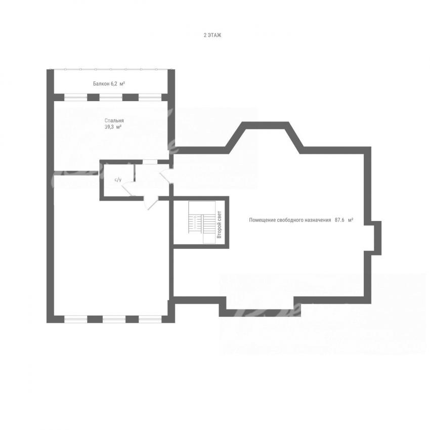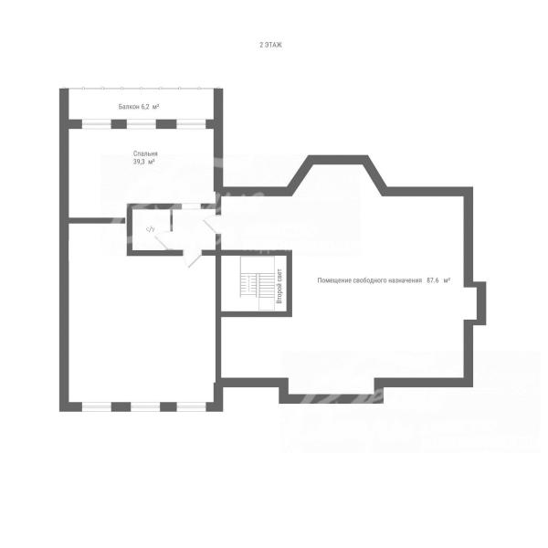 2-ой этаж: помещение свободного назначения 88 кв.м, спальня 39 кв.м с балконом 6 кв.м, спальня 52 кв.м;