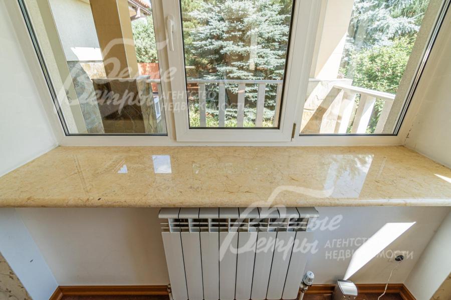 Полы цокольного этажа, кухни и санузлов покрыты плиткой, первого и второго этажа - инженерная доска из красного африканского дуба Мербау. Широкая деревянная лестница, изготовленная полностью из массива краснодарского дуба, с темно-коричневой тонировкой, с массивными колоннами и балясинами - цена на сегодня более 2 млн.руб. Потолки оштукатурены и покрашены. Установлена импортная сантехника Cersanit, смесители - Grohe. Разводка коммуникаций выполнена под ключ. Электрика - Legrand. Межкомнатные двери сделаны на заказ из массива ангарской сосны. Проемы в гостиную и кухню - из массива дуба, как и лестница. Подоконники из мрамора бежевого цвета (похож на Crema Nova), толщиной 3 см.