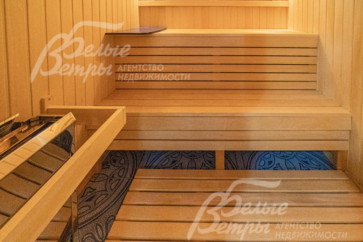 Опции: сауна; купель; терраса; камин; машиномест крытых: 2, в т.ч. в теплом гараже: 2; оборудованный кинозал 39 кв.м, сейф под оружие.