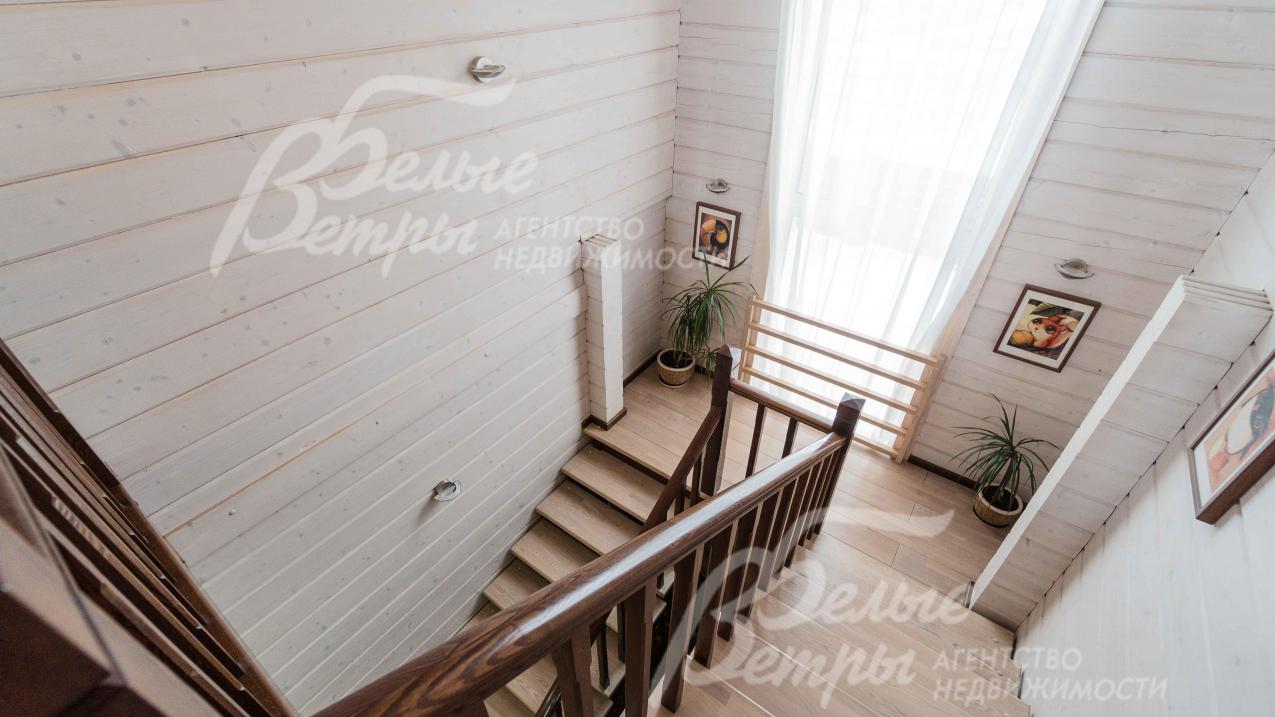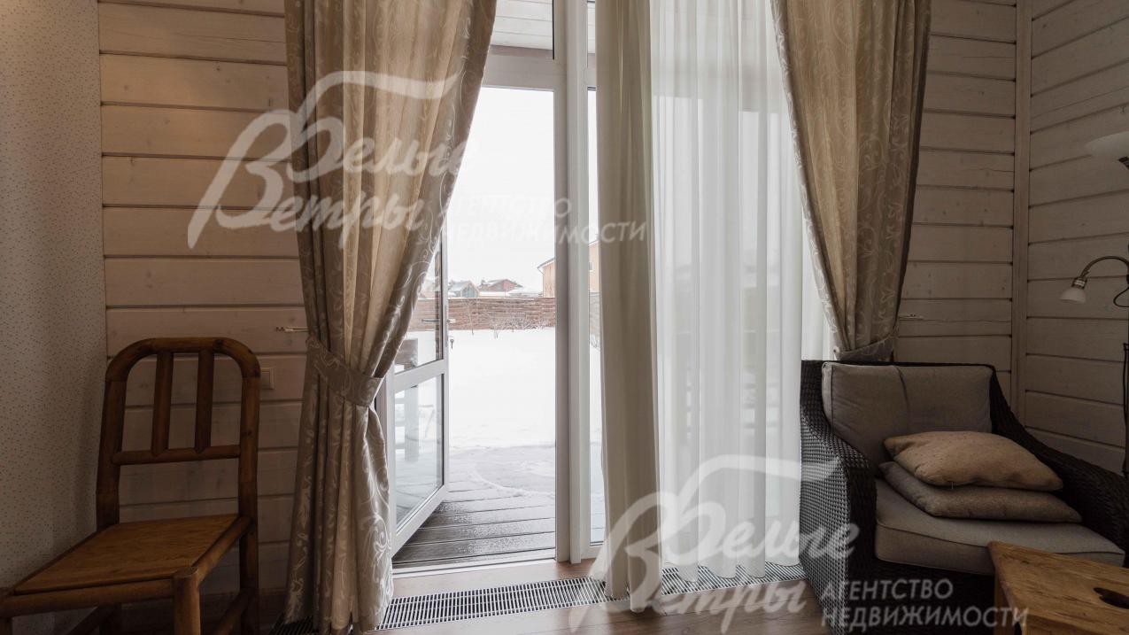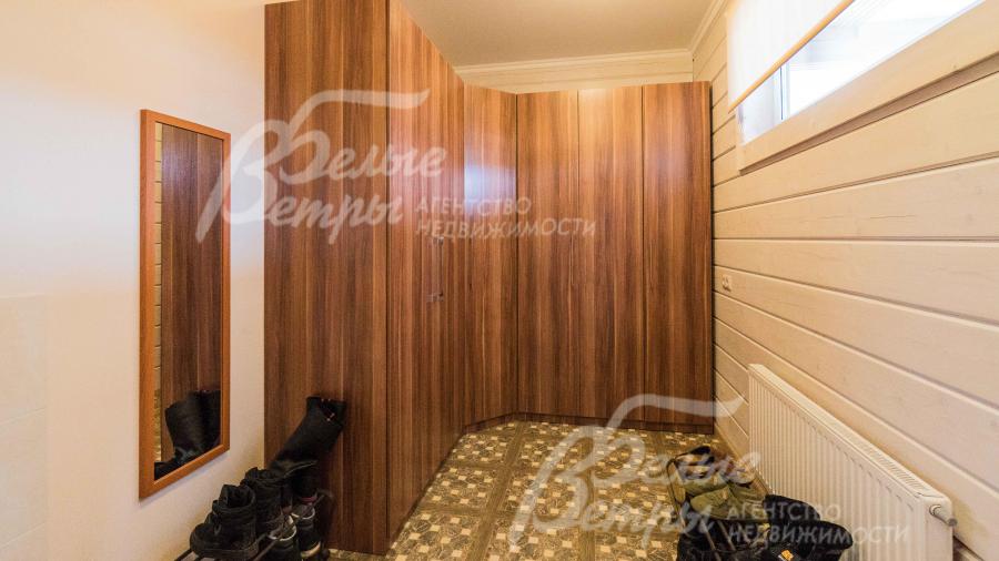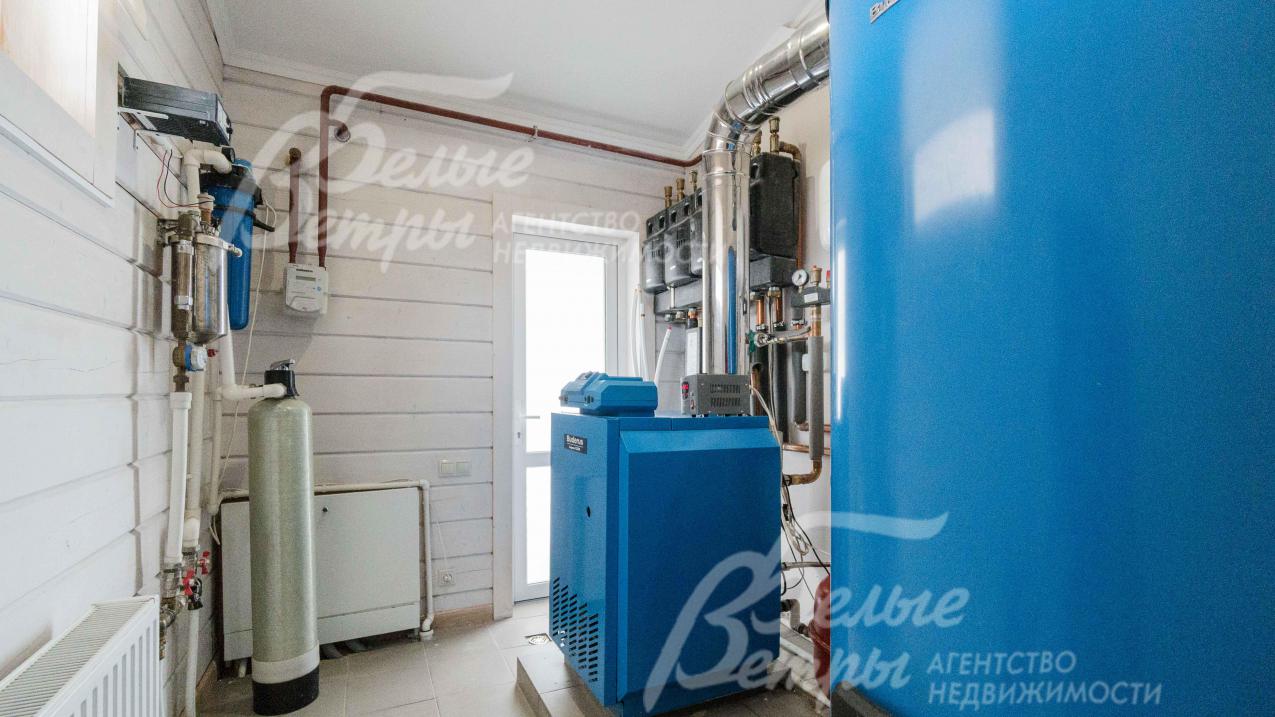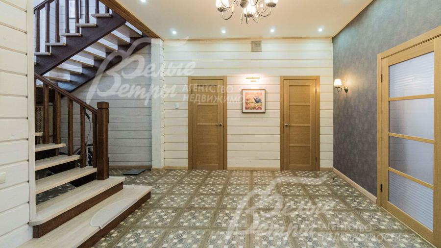 Описание внутренней отделки: стильная отделка дорогими материалами в светлых тонах; на стенах окрашенный брус пропитка Zobel (Германия), английские обои, в санузлах плитка; на первом этаже везде теплый пол (водяной) под плиткой, керамогранитом, и ламинатом (34 класс); на втором этаже в санузлах плитка с водяным подогревом, в остальных помещениях ламинат; на полу террасы и балконов террасная доска (декинг); лестница деревянная (ясень); потолки ГКЛ подвесные окрашенные и деревянные с декоративными раскладками; сантехника установлена ведущих брендов; все разведено; польные конвекторы; стальные радиаторы Керми. Разводка в котельной - медь; э/э - Legrand; двери деревянные шпонированные (ясень) Porta Prima; подоконники деревянные;