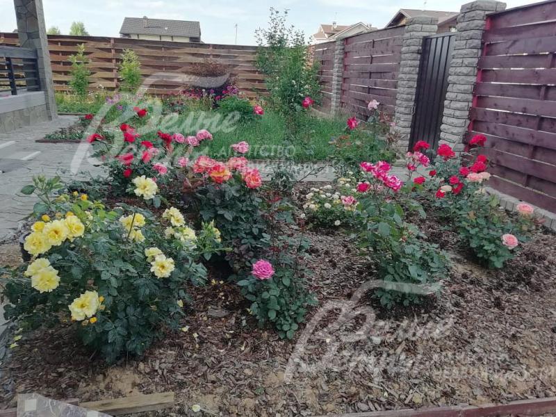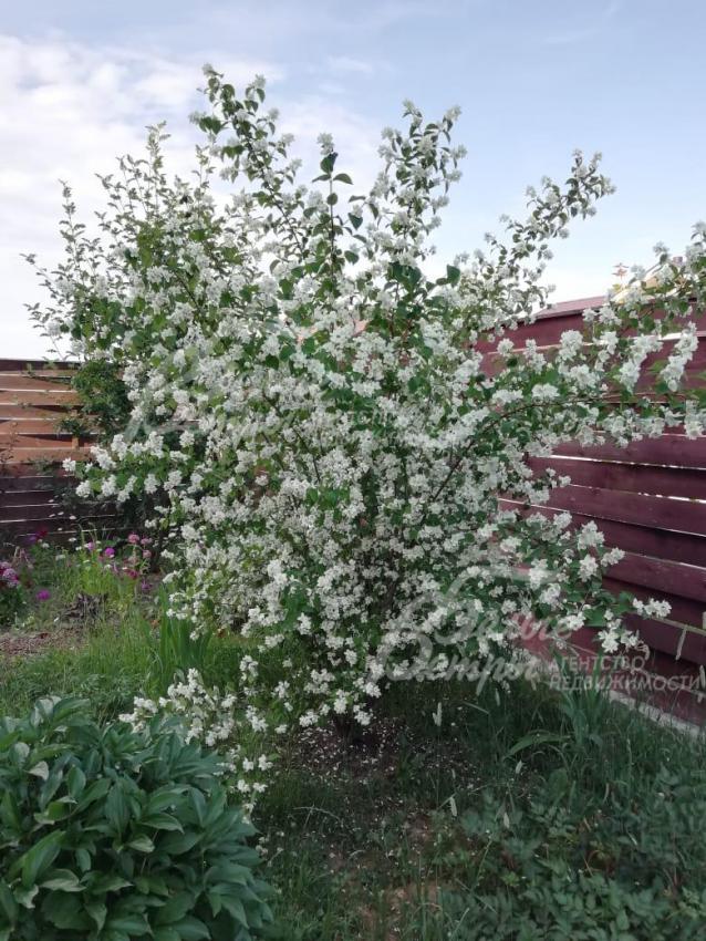 Благоустройство участка: сделаны дорожки, высажен газон, высажено большое количество плодовых деревьев, 2 сосны, много декоративных кустарников; ливневая система выведена в дренаж вокруг дома, который закольцован в колодец (используется для полива);