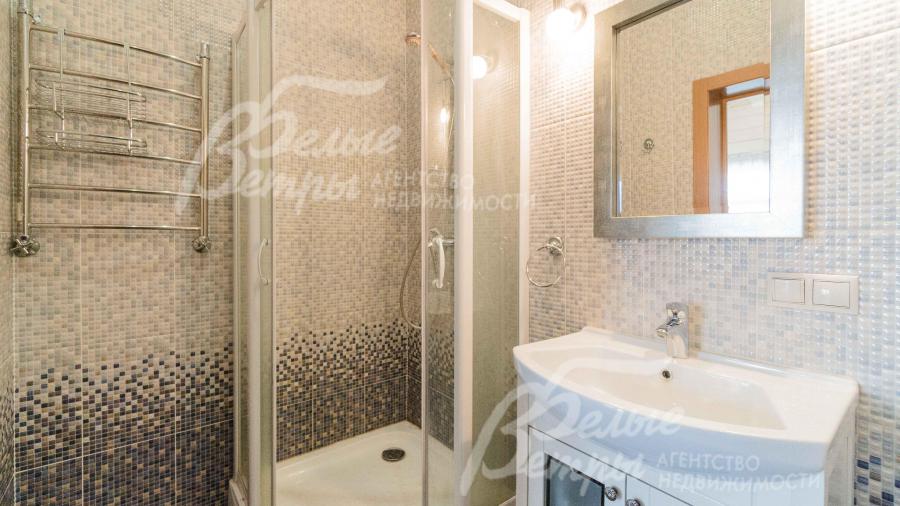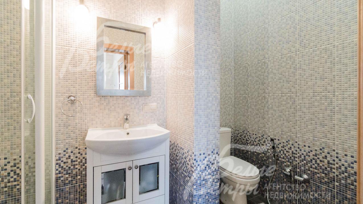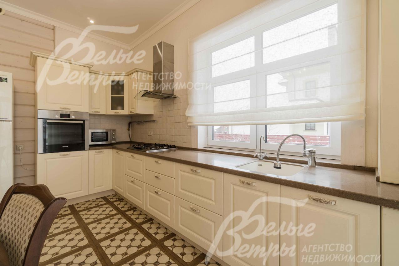 Мебель, оборудование: кухня: фасады деревянные покрытые эмалью, столешница искусственный камень. Встроенная техника: духовой шкаф Bosch, варочная панель (газовая) Bosch;