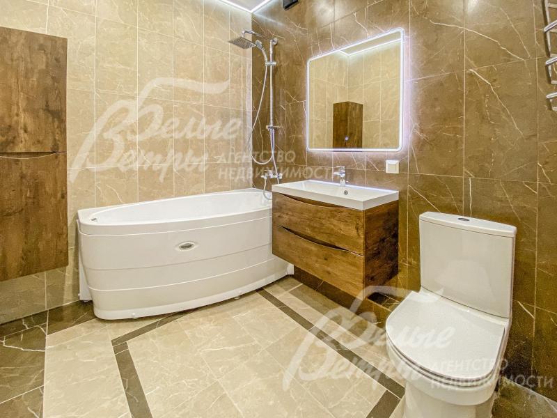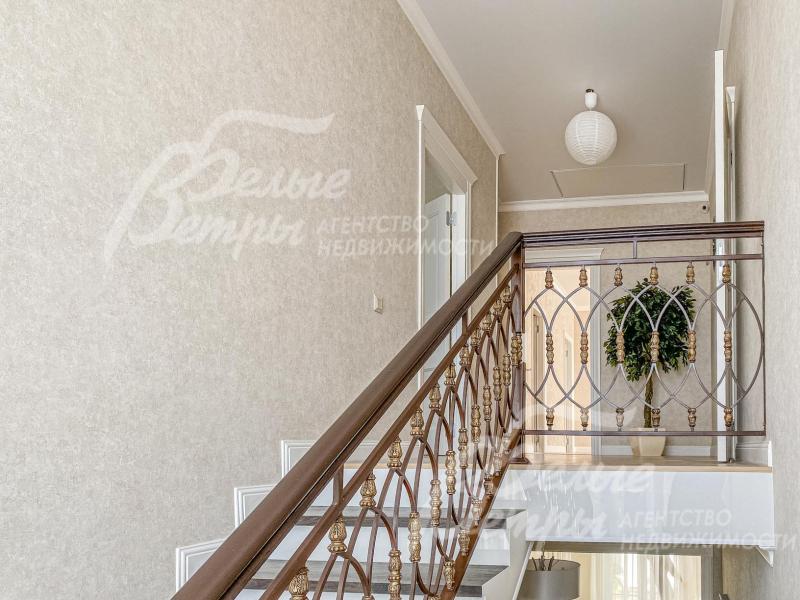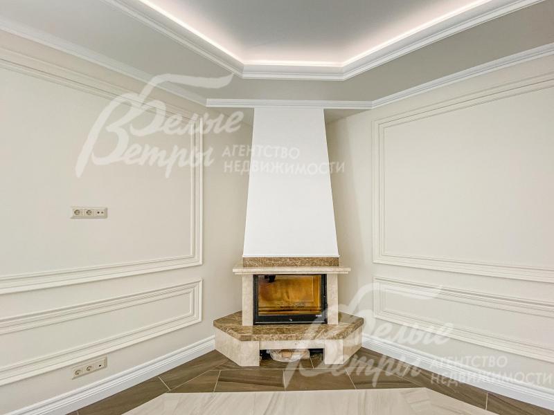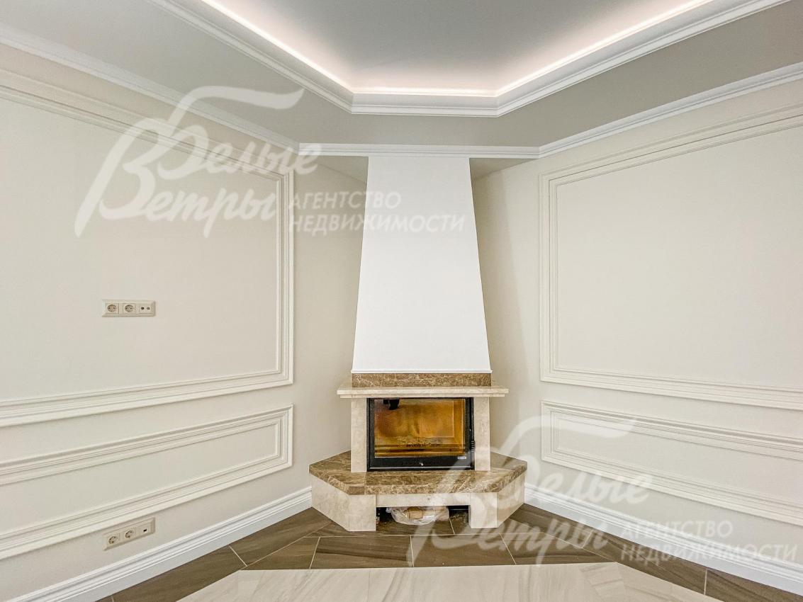 Описание внутренней отделки: выполнена качественная внутренняя отделка в стиле современной классики. Стены покрашены, в спальнях поклеены обои, Потолочные карнизы и плинтуса белого цвета. Полы с водяным подогревом там, где керамогранит и плитка (7 контуров), дорогой ламинат (33 класс) в спальнях. Лестница на ж/б основании, стандартной ширины, ступени - керамогранит, кованое ограждение. Натяжные потолки со встроенными светильниками и люстрами. Установлена сантехника Jacob Delafon. Все коммуникации разведены, теплые полы на 1-ом этаже и в санузлах на 2-ом этаже, радиаторы на 2-ом этаже. Электрика - Legrand. Светлые межкомнатные двери из МДФ. Камин отделан мрамором.