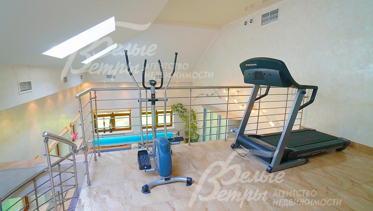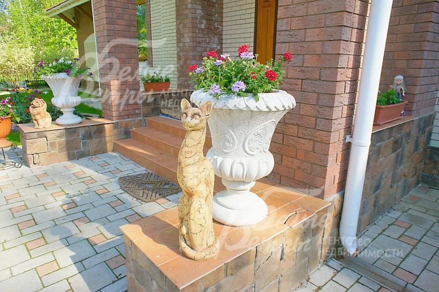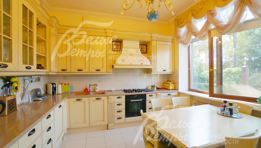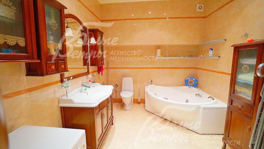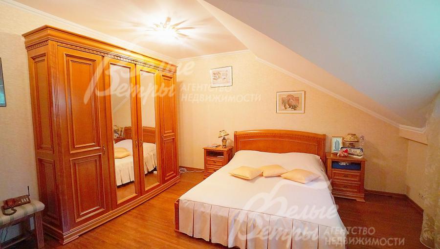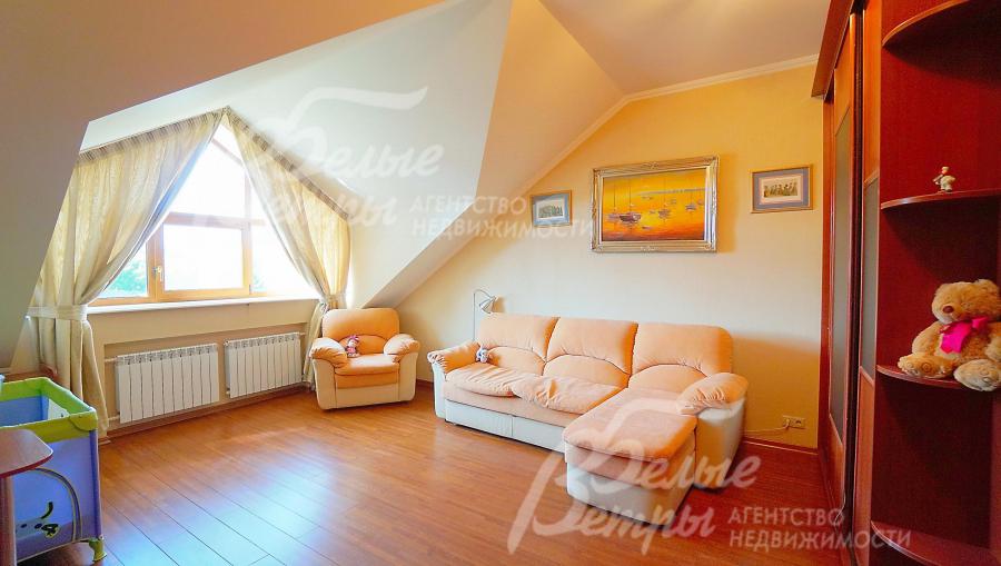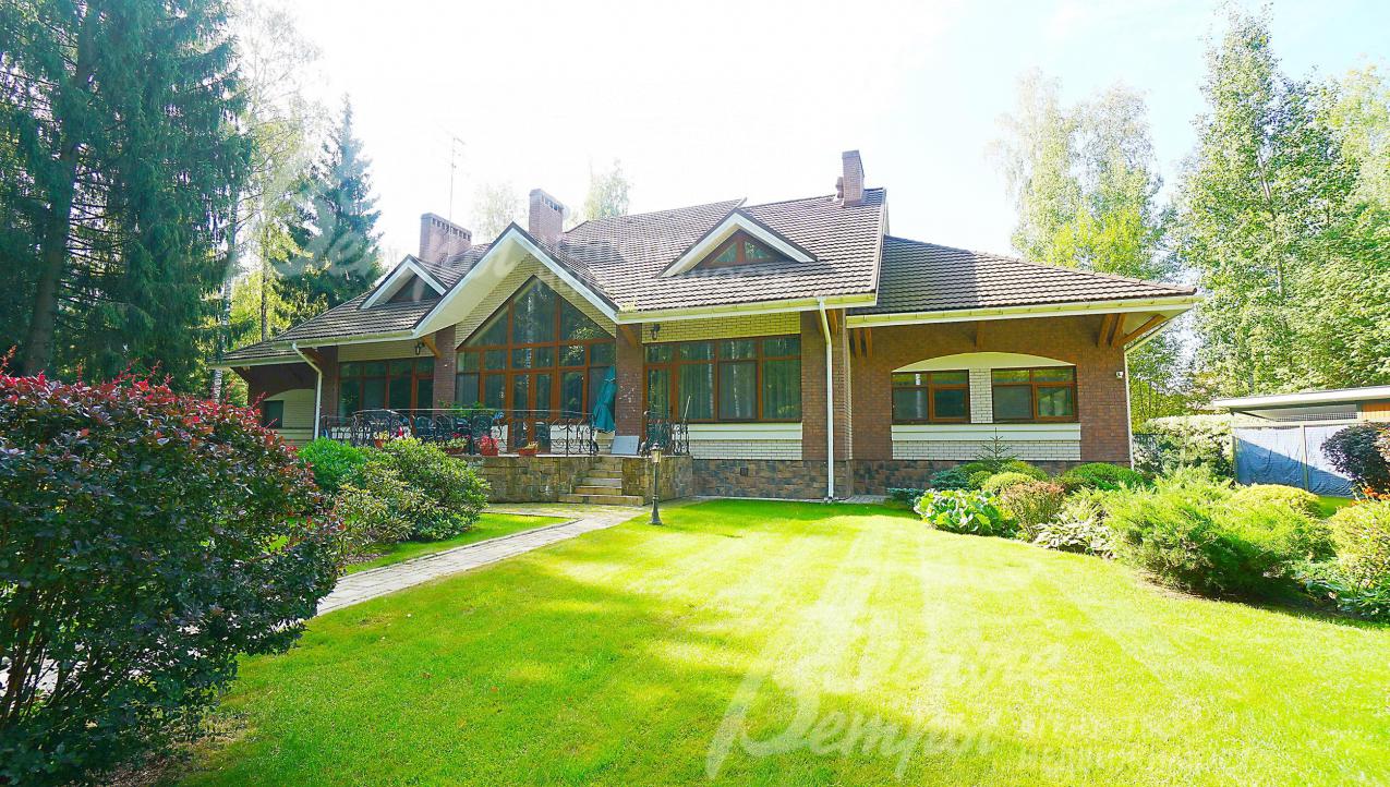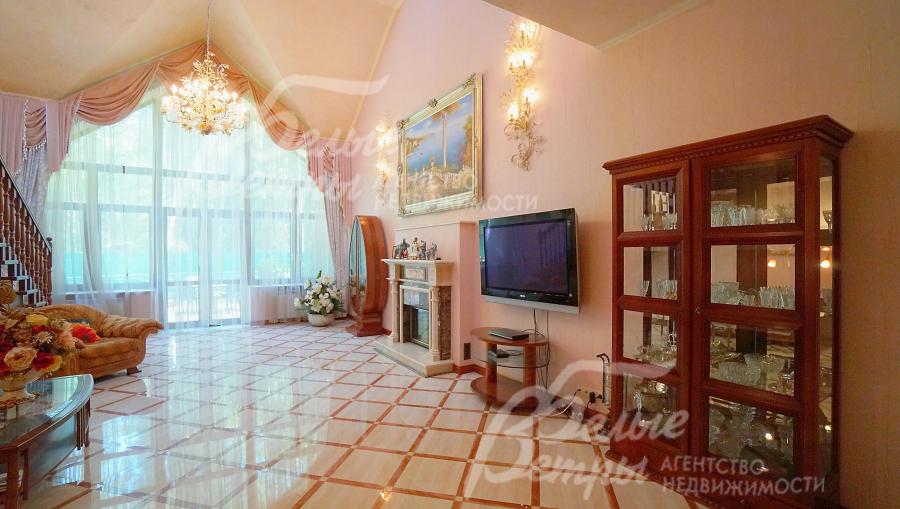 Двухуровневый дом премиум класса, расположенный в тихой части поселка на лесном участке с собственным выходом в лес. В доме 5 спален, просторная двухсветная гостиная с камином, бильярдная, а также зона спа с бассейном, сауной, хамамом, тренажерным залом. В доме есть квартира для персонала. Отделка дома выполнена из высококачественных материалов: на стенах - декоративная венецианская штукатурка, картины испанских художников, на полу - паркет ценных пород дерева мербау, керамогранит и мрамор с водяным подогревом. Дом укомплектован антикварной мебелью. На участке множество деревьев, декоративных кустарников, розарии, сухой ручей, фонтанчик. Дом находится в камерном коттеджном поселке с центральными коммуникациями. Недалеко от дома расположены школа и детский сад.