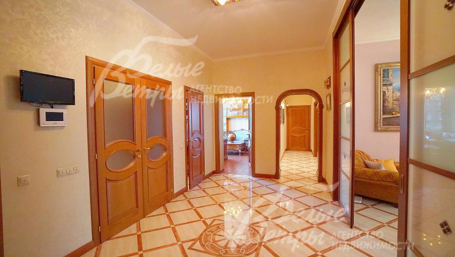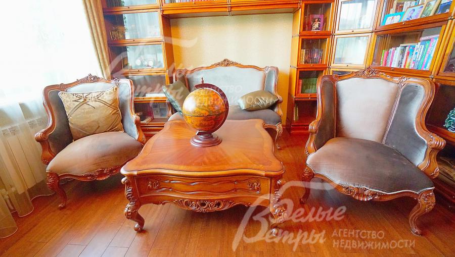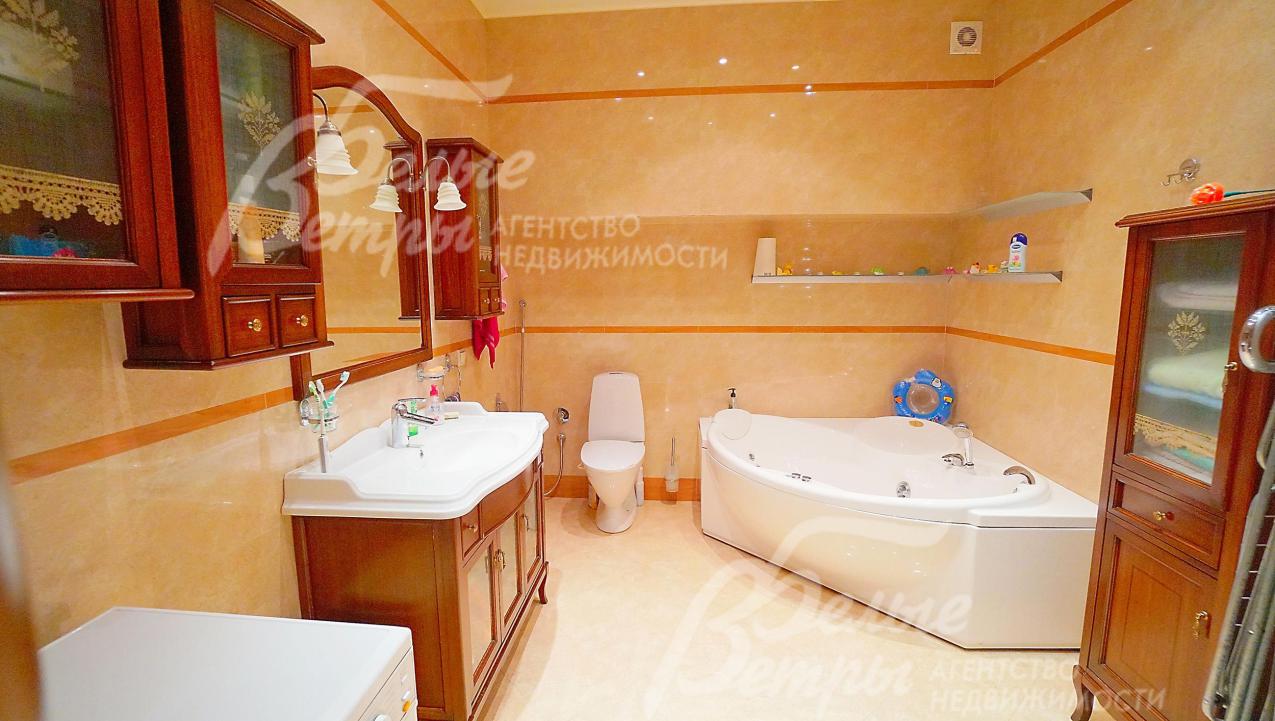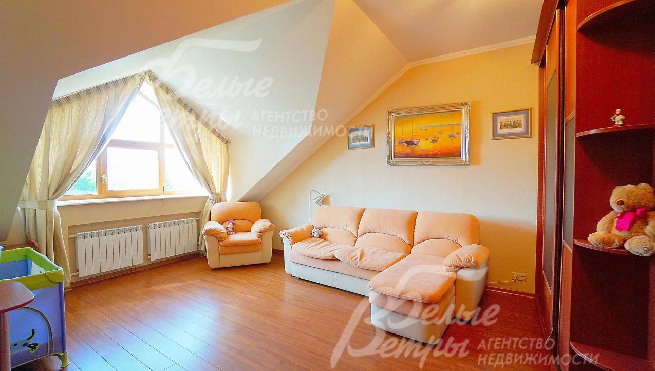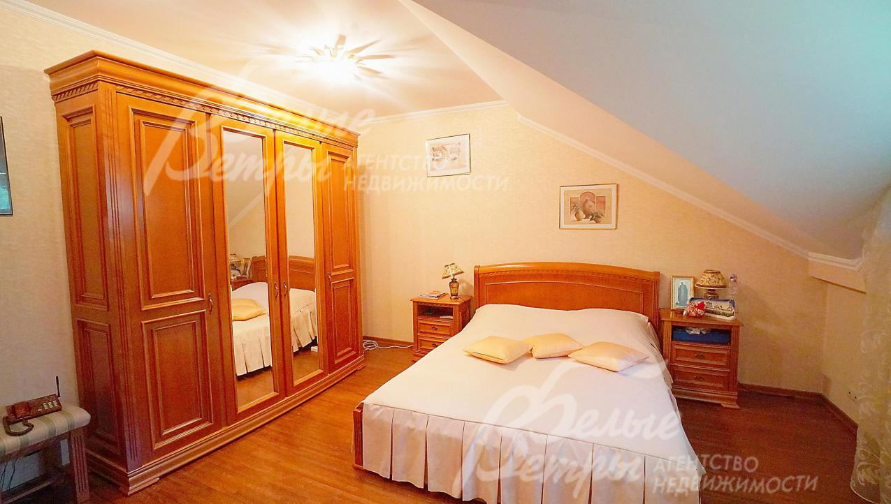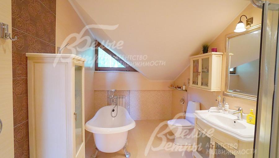 Двухуровневый дом премиум класса, расположенный в тихой части поселка на лесном участке с собственным выходом в лес. В доме 5 спален, просторная двухсветная гостиная с камином, бильярдная, а также зона спа с бассейном, сауной, хамамом, тренажерным залом. В доме есть квартира для персонала. Отделка дома выполнена из высококачественных материалов: на стенах - декоративная венецианская штукатурка, картины испанских художников, на полу - паркет ценных пород дерева мербау, керамогранит и мрамор с водяным подогревом. Дом укомплектован антикварной мебелью. На участке множество деревьев, декоративных кустарников, розарии, сухой ручей, фонтанчик. Дом находится в камерном коттеджном поселке с центральными коммуникациями. Недалеко от дома расположены школа и детский сад.