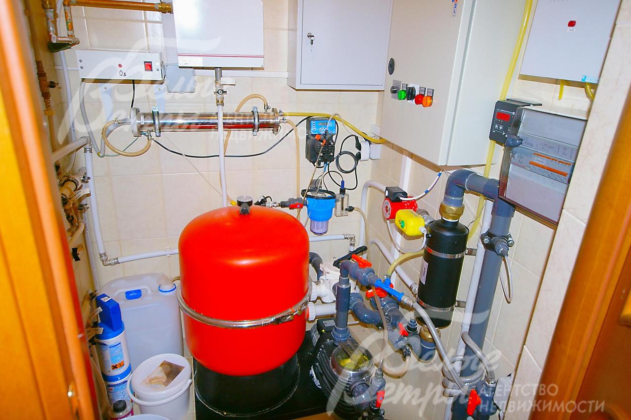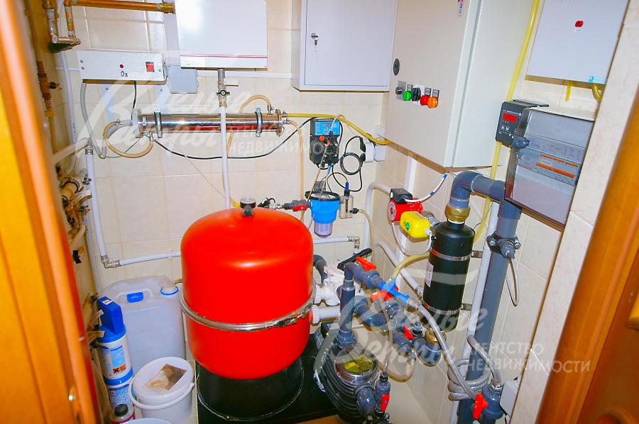 Инженерное обеспечение: Газовый котел Viessmann 100 кВт. Бойлер косвенного нагрева Viessmann 300 л. Многоступенчатая система очистки воды (США). Естественная приточно-вытяжная вентиляция, в бассейне - принудительная. В жилых комнатах кондиционеры Mitsubishi. Система очистки и обновления воды в бассейне кислородом. Генератор дизильный 15 кВт. Видеодомофоны. Сигнализация 3 уровня: по периметру дома и участка - датчики движения + камеры видеонаблюдения.