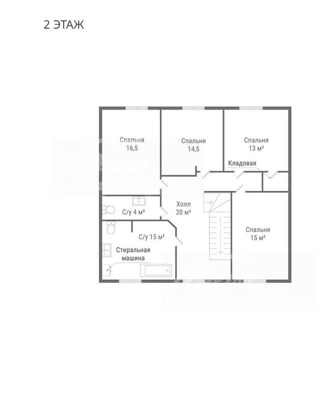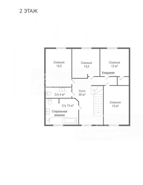 2-ой этаж: холл 20 кв.м, спальня 16,5 кв.м, спальня 14,5 кв.м, спальня 13 кв.м с кладовкой, спальня 15 кв.м, санузел 15 кв.м, санузел неполный 4 кв.м