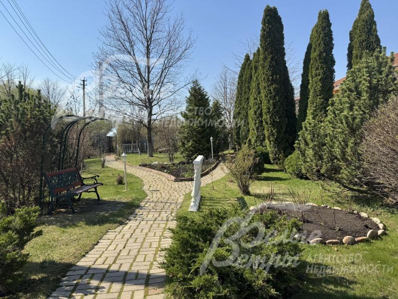 Благоустройство участка: на зелёном живописном участке выполнен проект ландшафтного дизайна с деревьями, кустарниками, цветниками, дорожками, вымощенными диким камнем. Высажено более 25 туй, лиственница, сосны, сербские ели, голубая ель, красный дуб, краснолистный клён, голубая ива, береза, каштан, липа. Среди плодовых деревьев: яблони (антоновка и белый налив), слива, вишня. Участок украшают розарий, сирень, белые и лимонные гортензии, куст бульденеж, хосты, метельчатая спирея. Обустроен французский огород с высокими симметричными грядками. По периметру участка проходит дренажная система