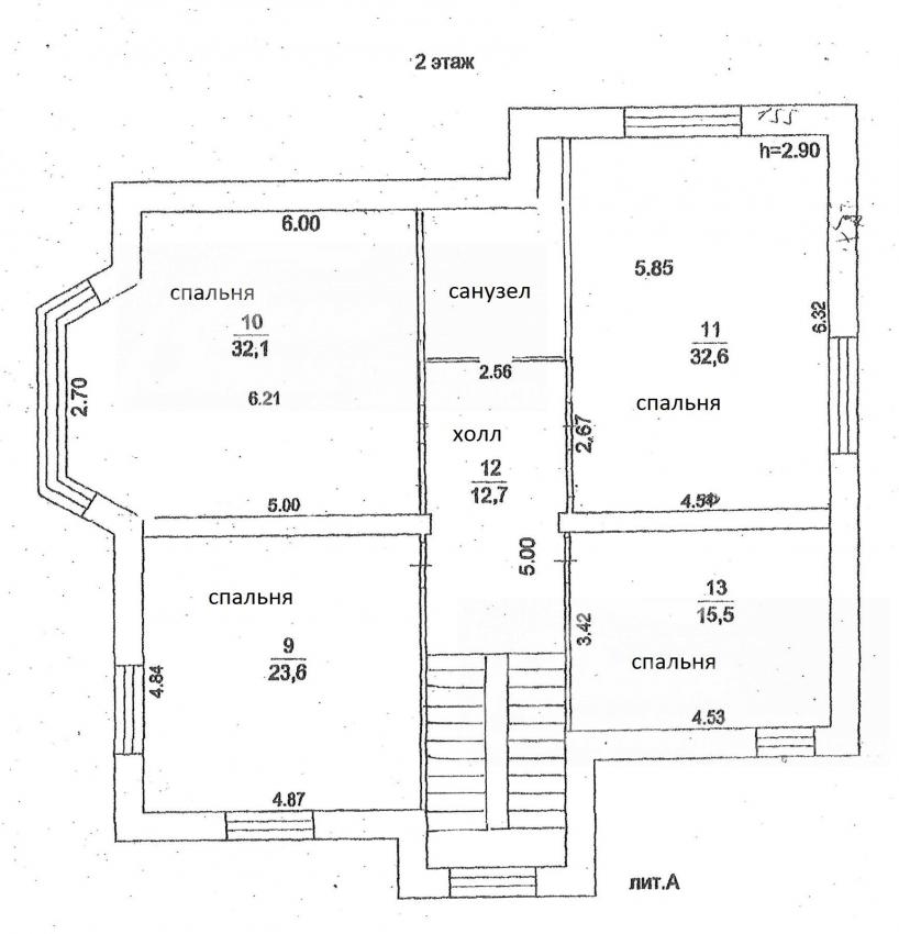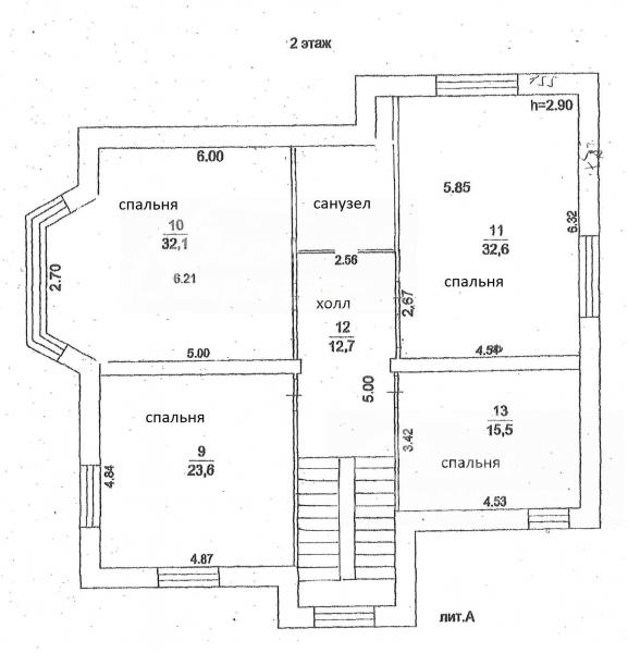 2-ой этаж: Спальня 23.6 кв.м, спальня 32 кв.м, спальня 32.6 кв.м, спальня 15.5 кв.м, санузел, холл 12.7 кв.м.