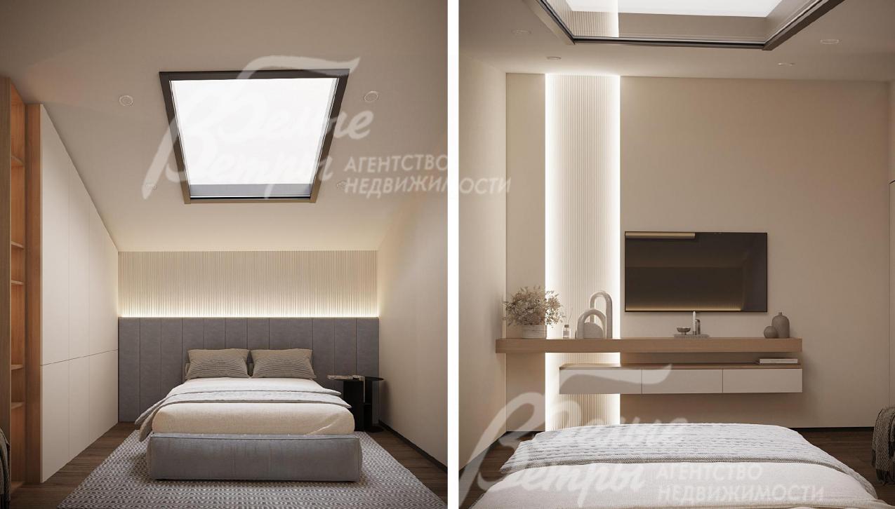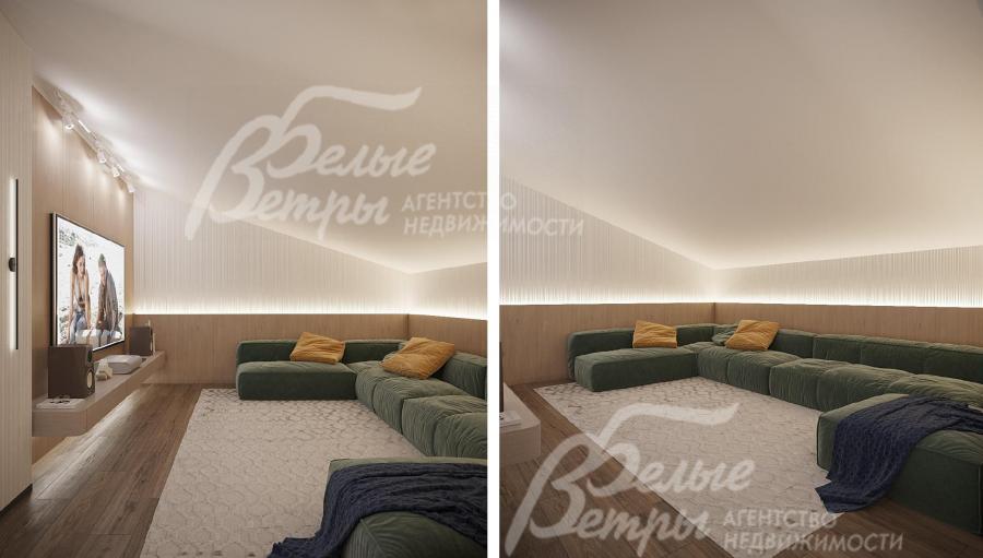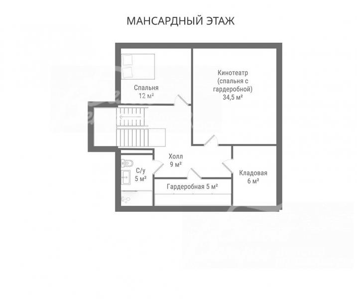 3-ий этаж: мансардный этаж. По проекту: холл 9 кв.м, кинотеатр 34,5 кв.м (либо спальня с гардеробной), спальня 12 кв.м, санузел 5 кв.м, гардеробная 5 кв.м, кладовая 6 кв.м