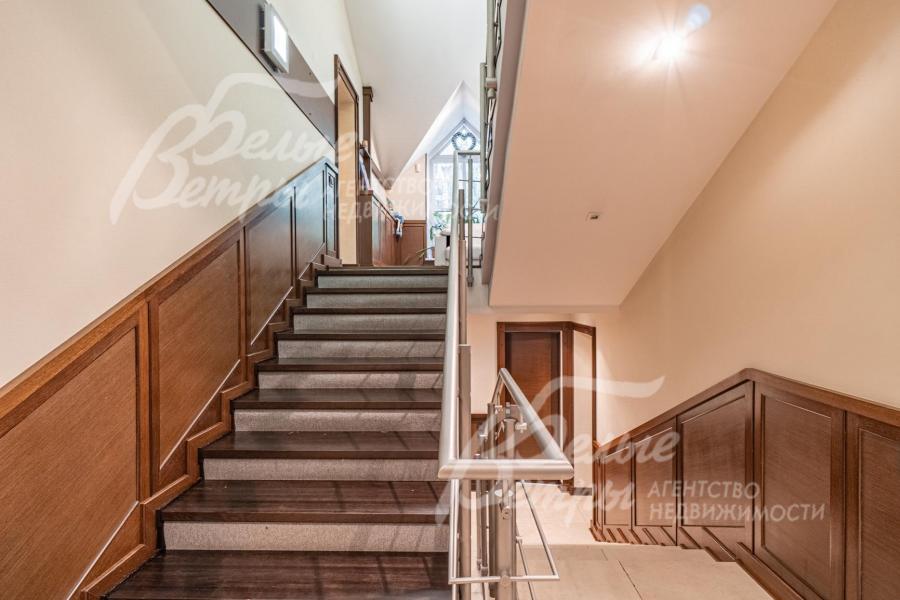 Описание внутренней отделки: выполнена классическая отделка под ключ. На стенах обои. На полу плитка, паркет. Широка лестница с удобным подъемом. Потолки ошпаклёваны и покрашены. Разведены все коммуникации под ключ. Установлена сантехника. Межкомнатные двери шпонированные/стеклянные.
