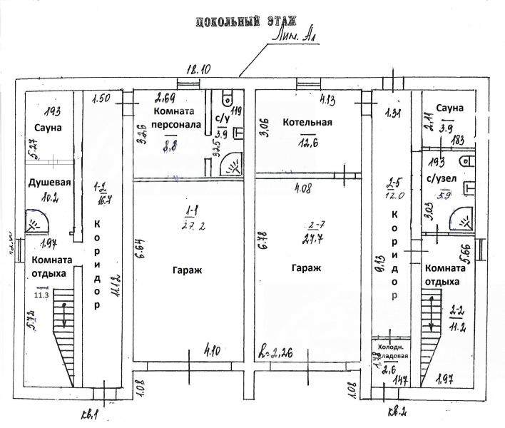Цоколь: Левая секция: гараж 27 кв.м, коридор 17 кв.м, комната отдыха 11 кв.м с душевой 5 кв.м и сауной 5 кв.м, комната персонала 9 кв.м с с/узлом 4 кв.м