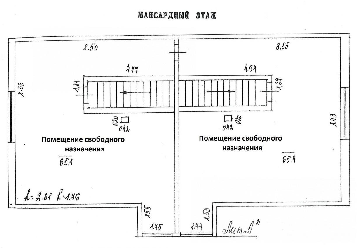3-ий этаж: В каждой секции: мансарда - помещение свободного назначения 65 кв.м