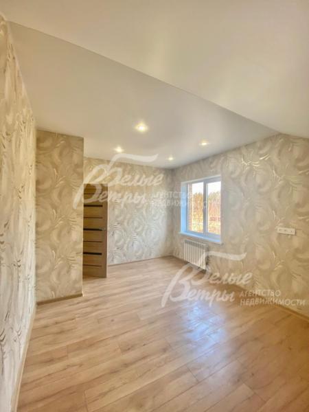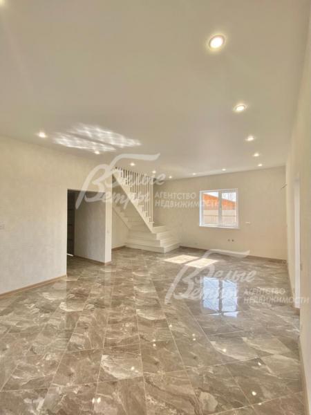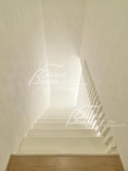 Описание внутренней отделки: отделка под ключ в современном стиле, новый дом в светлых тонах. На стенах обои, на полу плитка с подогревом. Лестница деревянная. Потолки натяжные с подсветкой. Вся сантехника установлена. э/э разведено. Входная металлическая дверь.
