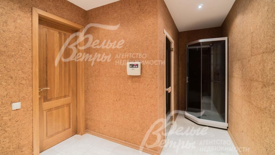 Описание внутренней отделки: в доме выполнен качественный ремонт с применением дорогих материалов. Стены под покраску (на 1-ом этаже декоративная штукатурка - фактурная покраска, в зоне сауны - пробковое покрытие). Полы: 1-ый и 2-ой этаж - массив дуба (доска), плитка с водяным подогревом, на мансарде - пробковое покрытие. Лестница на железобетонном основании стандартной ширины, армированные ступени отделаны дубом, балясины и поручни из дуба. Потолок многоуровневый с декоративным карнизом из ПВХ и с точечным освещением, скрытые карнизы. Установлена импортная сантехника Duravit; фурнитура/смесители Grohe, Oras; душевые кабины IDO, угловые джакузи. Все коммуникации разведены, э/э Legrand, теплые полы, радиаторы стальные панельные Kermi. Высокие межкомнатные двери из массива дуба. Подоконники дубовые клееные. Камин Spartherm (Германия), дровяной, отделан светлым мрамором (Италия).