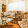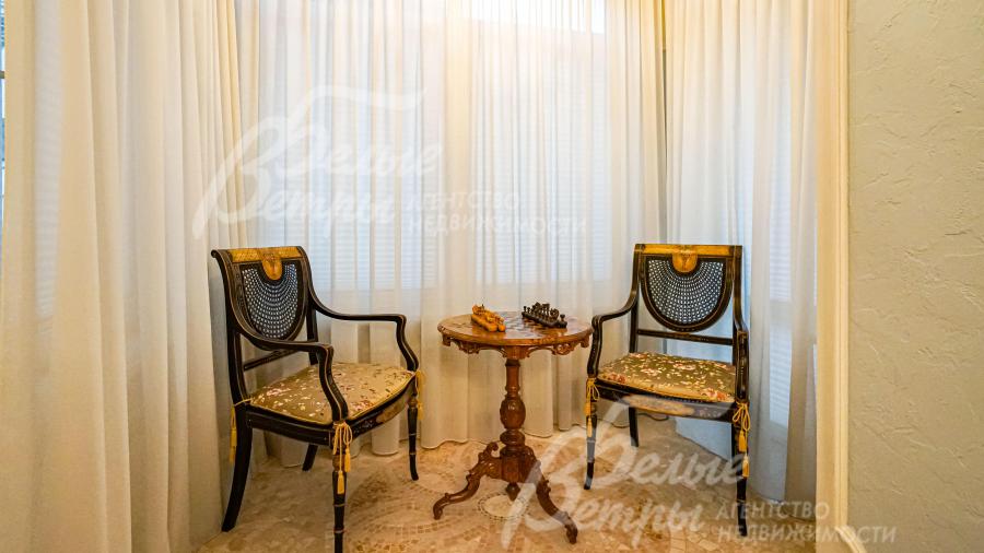 Мебель, оборудование: кухня (Италия) фасады - дерево, столешница - искусственный камень, Встроенная техника: варочная панель (газовая), духовой шкаф - SMEG; посудомоечная машина и холодильник - Bosch. В доме антикварная мебель. Люстры (Испания, Италия). Шторы - французский текстиль. Мягкая мебель кожаная. Много резной мебели из массива;