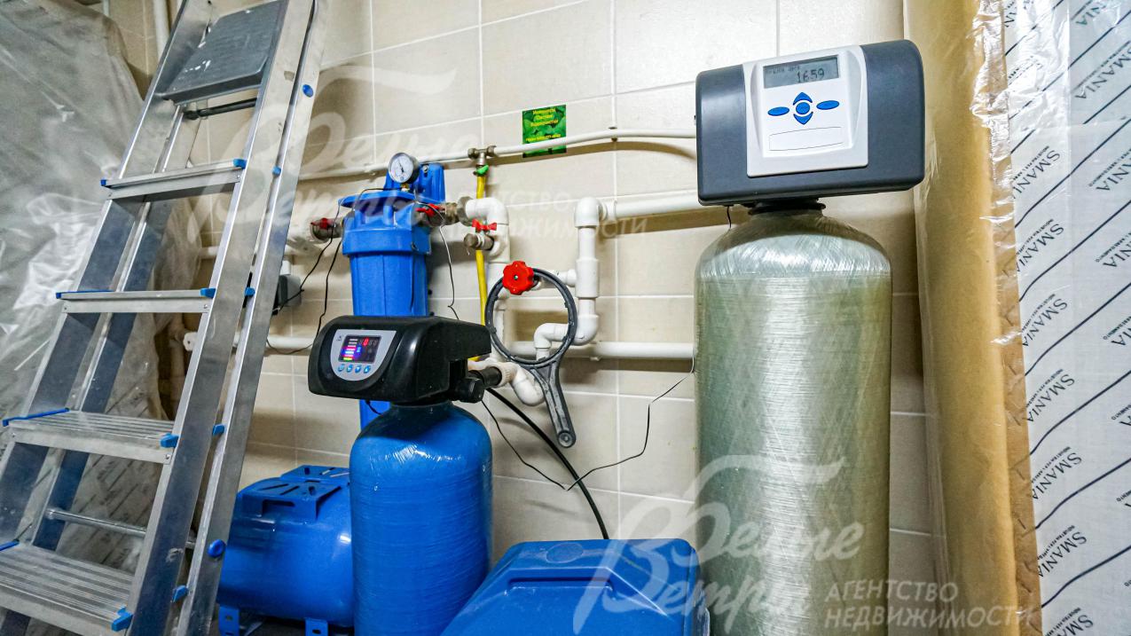 Инженерное обеспечение: газовый котел Viessmann 100 кВт, бойлер косвенного нагрева Vitocell на 150 л; многоступенчатая система водоподготовки; в жилых зонах установлены кондиционеры Mitsubishi; система авто полива GARDENA; стабилизатор э/э на котел; парогенератор Tylo;
