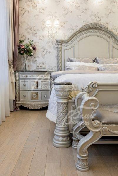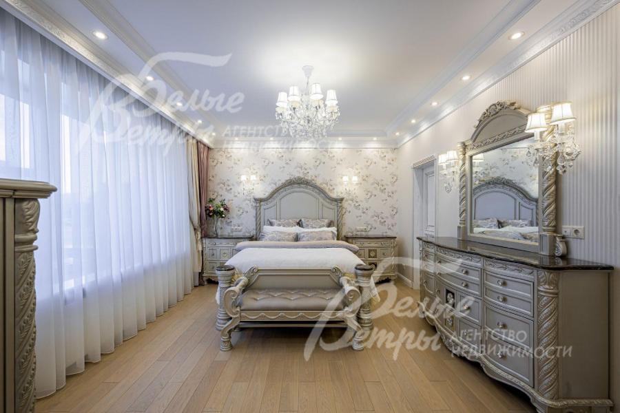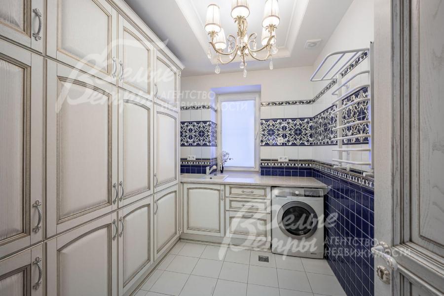 Мебель, оборудование: дом укомплектован мебелью из ценных пород дерева американских производителей Ashley и Michael Amini, хрустальными люстрами и бра от ведущих итальянских производителей, техникой и текстилем. Столешницы: лабродорит-гранит Labrador Blue Pearl (Норвегия); гранит Snow White (Индия) и Star Galaxy Black (Финляндия), Brown Antique (Бразилия).