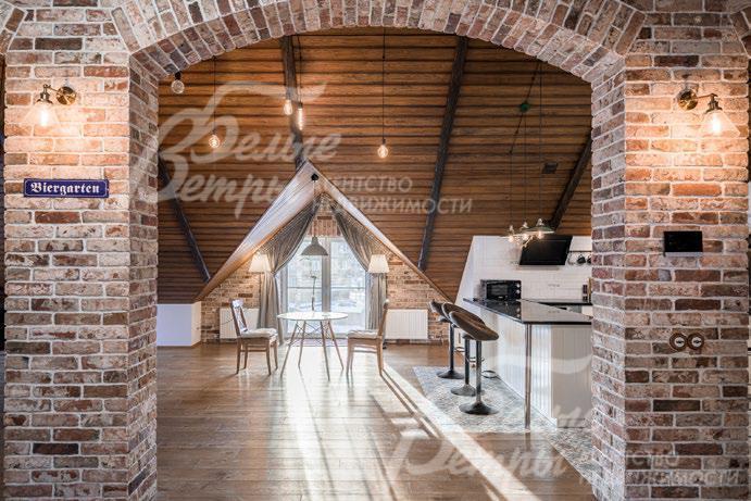 3-ий этаж: мансардный этаж: стильная студия с собственной кухней 121 кв.м, гардеробной и кладовой, спальня 40 кв.м, ванная комната 16 кв.м.