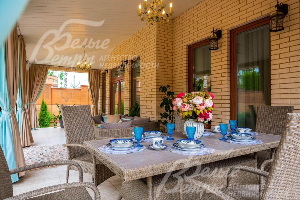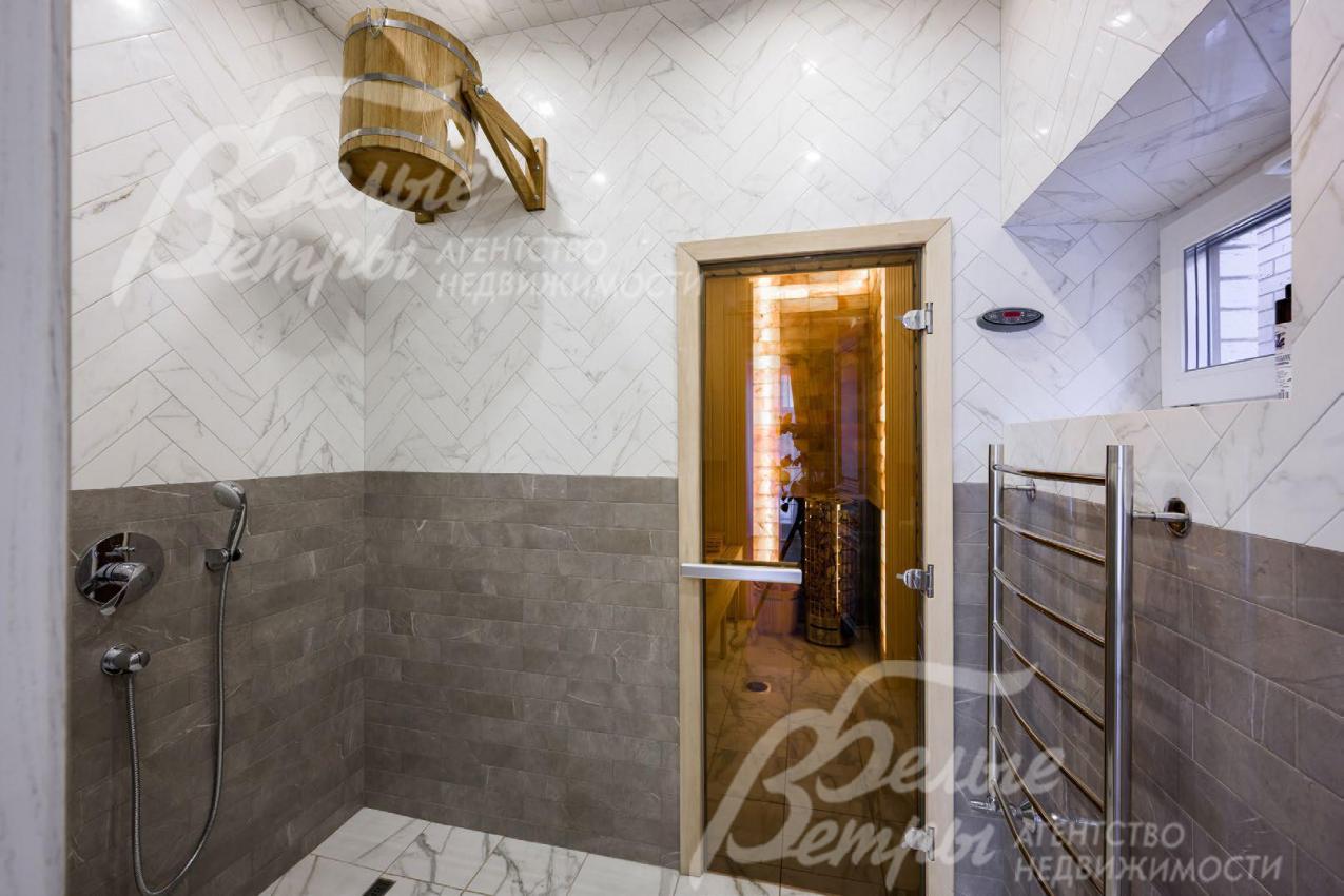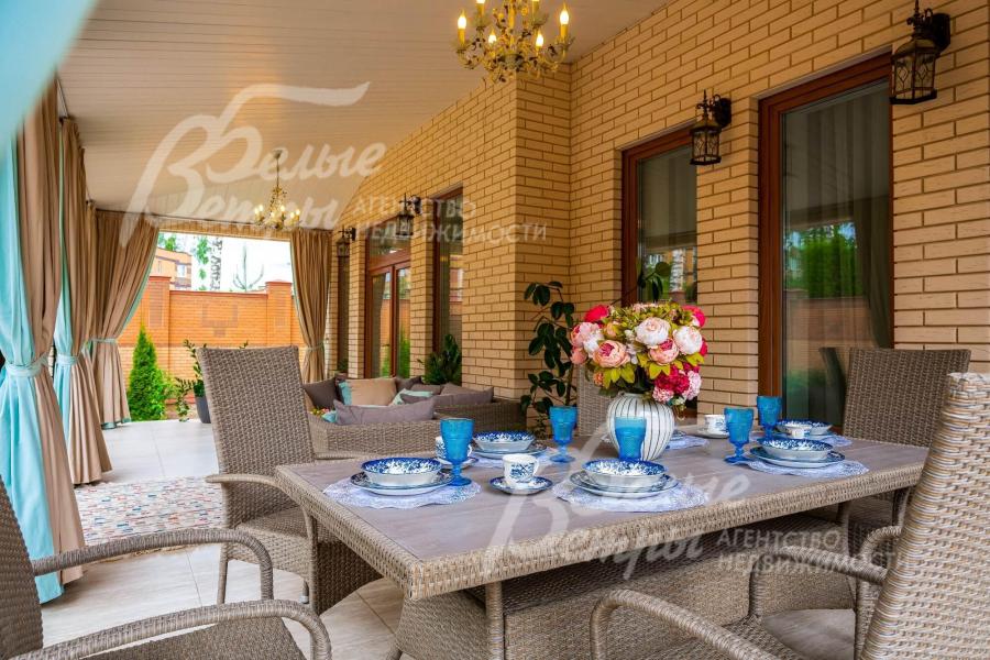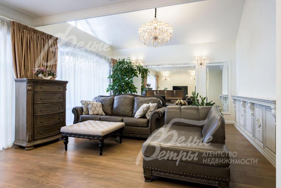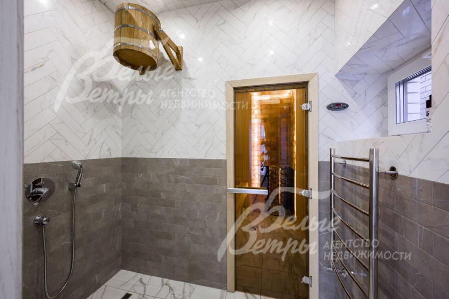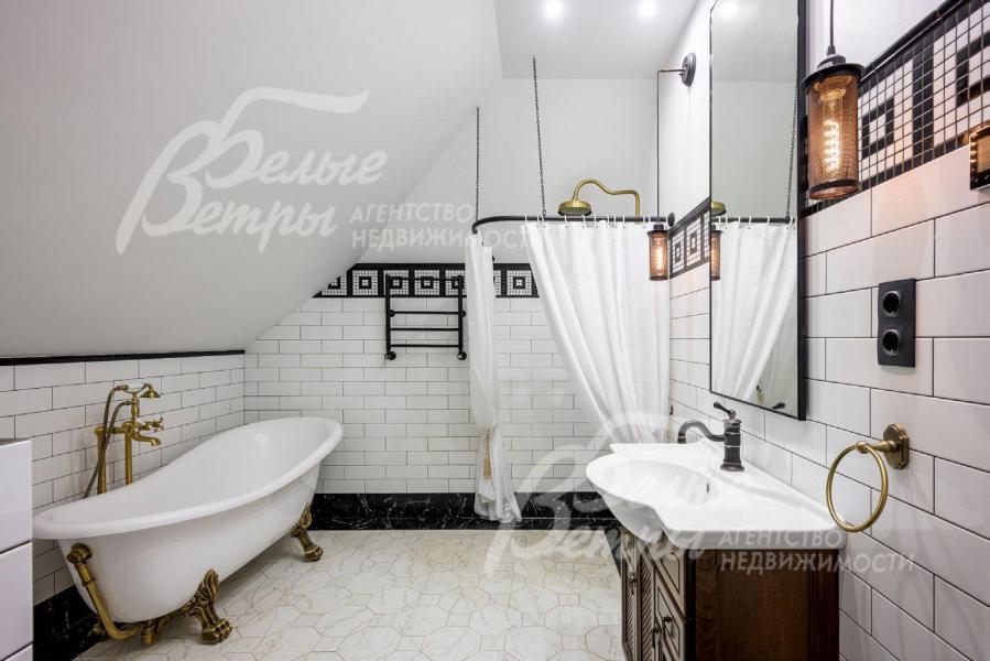 Описание внутренней отделки: в строительстве и отделке дома использовались только экологически чистые, качественные и дорогостоящие материалы. Дышащие обои и авторское покрытие под золотистым воском. Стены и колонны - исторический кирпич из Санкт-Петербурга XVIII-XIX вв. Полы: массив дуба, мрамор, итальянский керамогранит, в санузлах итальянская и испанская коллекционная плитка. Подоконники - натуральный мрамор Botticino Classico (Италия). Лестницы монолитные, ступени - натуральный мрамор Crema Marfil (Испания). Сантехника: Magliezza (Италия), Migliore (Италия), Grohe (Германия), Burlington (Англия). Плитка: Atlas Concorde (Италия), Modernista Adex (Испания), Studio Adex (Испания); Venus Rossana (Испания), Peronda Provence (Испания). В гараже: керамогранит повышенной прочности Estima (Италия/РФ), Provenza (Испания). Сауна - плитка из натурального жадеита и гималайской соли.
