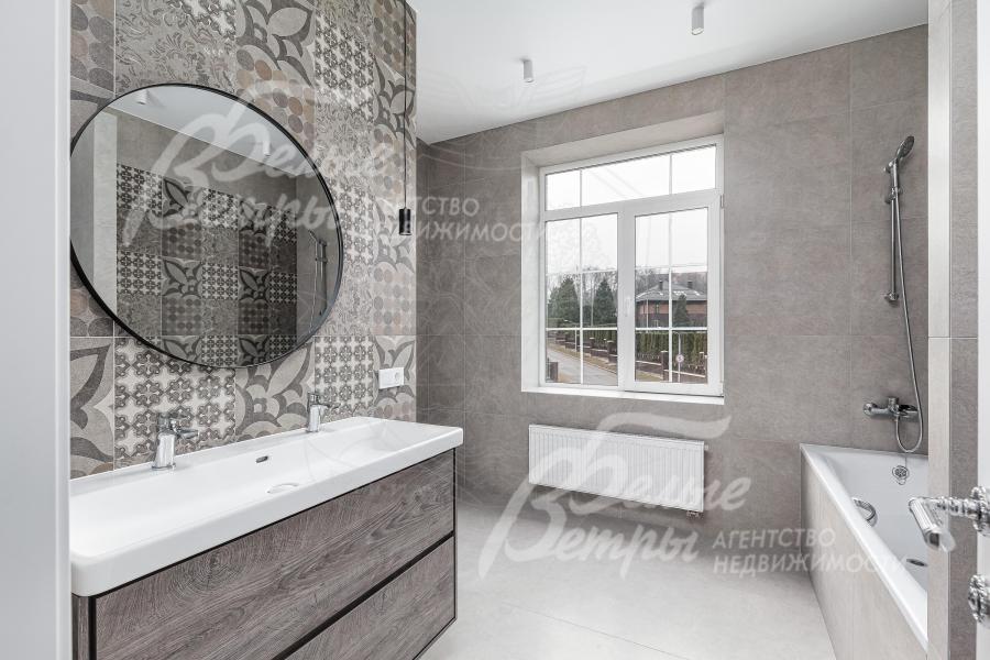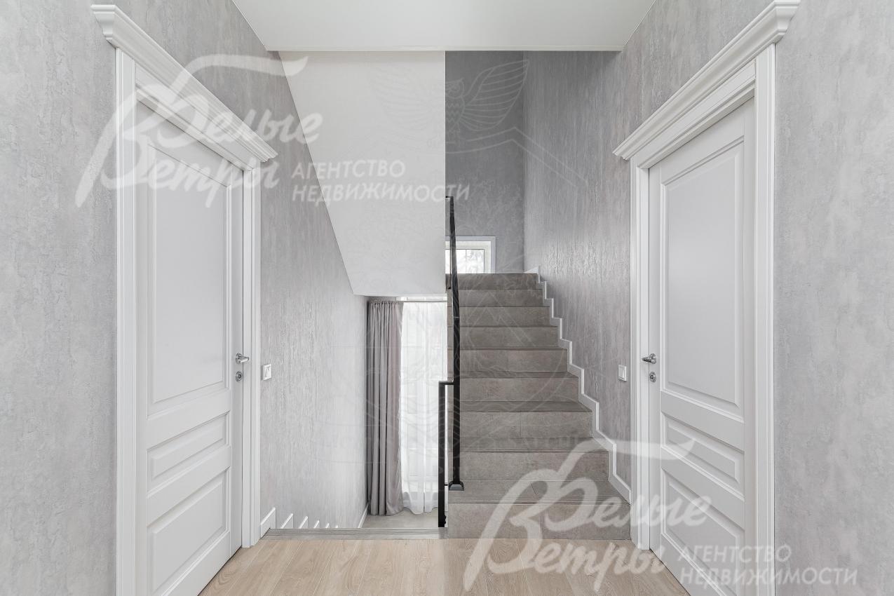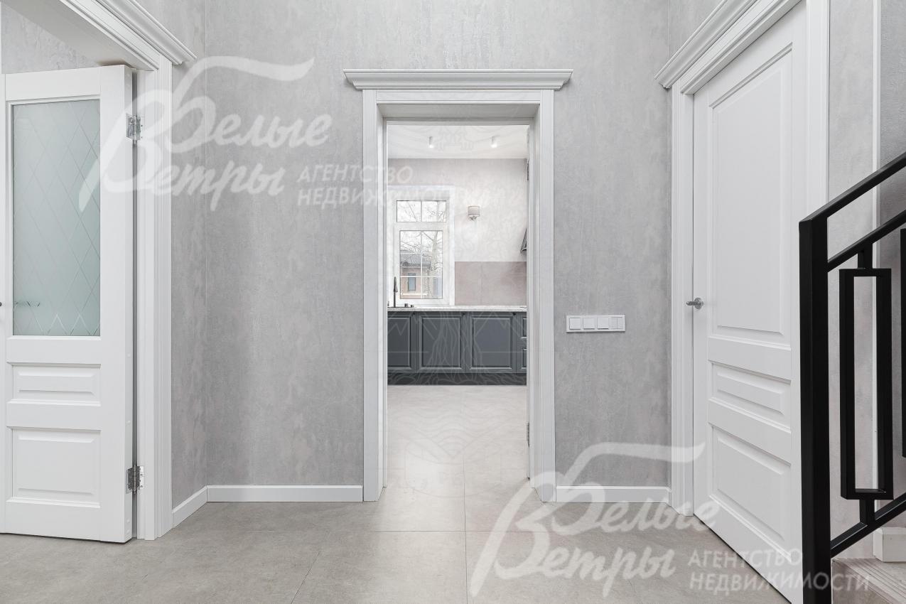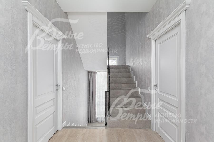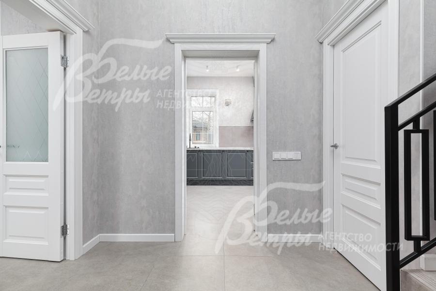 Описание внутренней отделки: отделка выполнена в классическом стиле. На стенах флизелиновые обои. На полу керамогранит и ламинат, водяной теплый пол везде, где керамогранит, в том числе на 2 этаже в санузлах. Установлены радиаторы Kermi, розетки SCHNEIDER ELECTRIC. Лестница на монолитном основании, отделана керамогранитом KERAMA MARAZZI, ограждение кованое. Натяжные потолки. Установлена сантехника Alcora, смесители AM-РМ. Деревянные межкомнатные двери, производитель ALBERO.