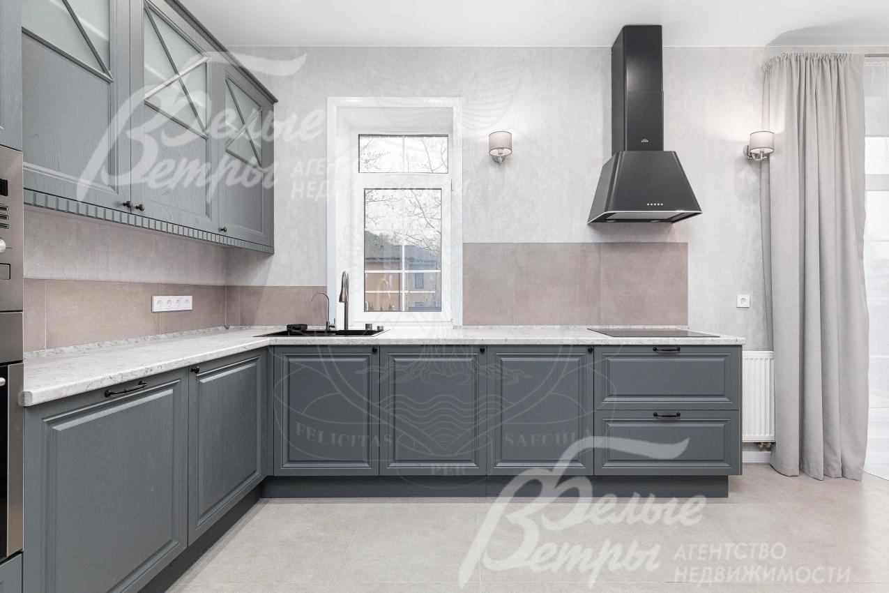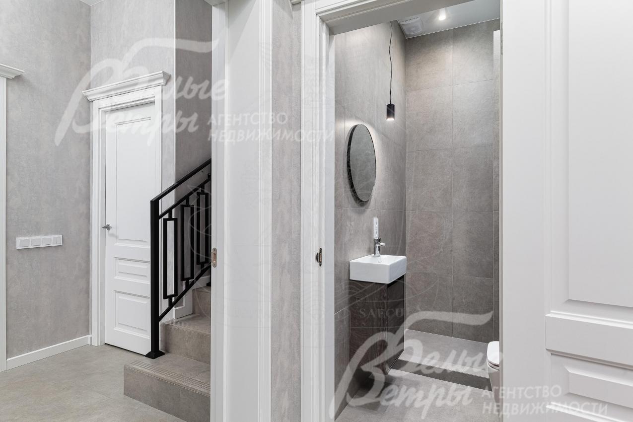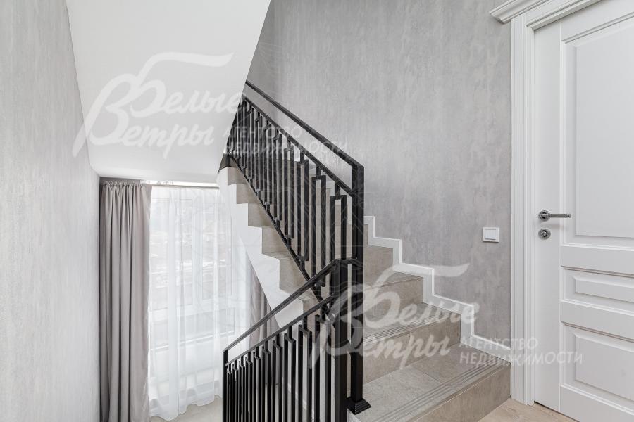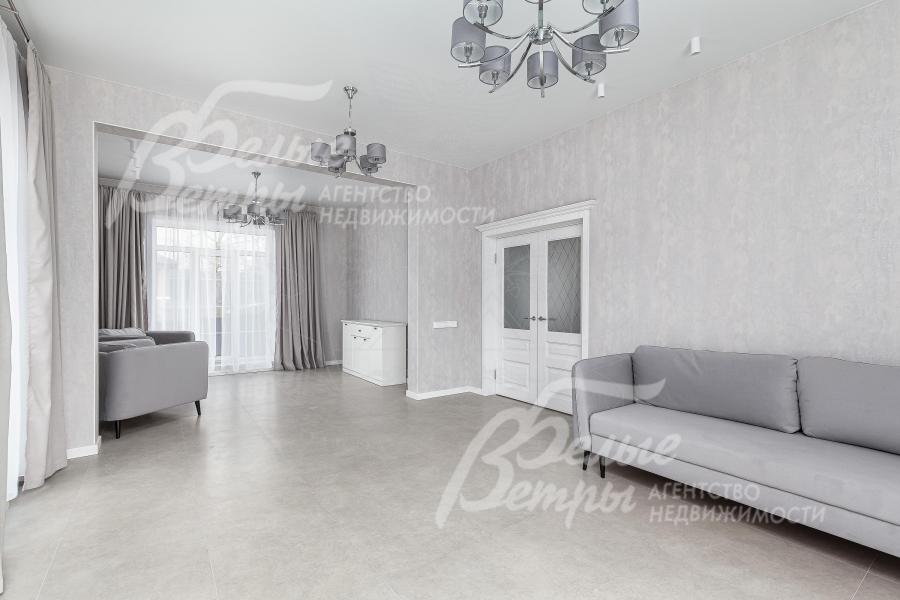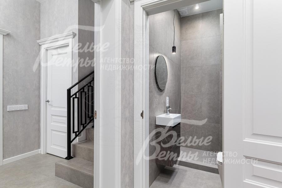 Описание внутренней отделки: отделка выполнена в классическом стиле. На стенах флизелиновые обои. На полу керамогранит и ламинат, водяной теплый пол везде, где керамогранит, в том числе на 2 этаже в санузлах. Установлены радиаторы Kermi, розетки SCHNEIDER ELECTRIC. Лестница на монолитном основании, отделана керамогранитом KERAMA MARAZZI, ограждение кованое. Натяжные потолки. Установлена сантехника Alcora, смесители AM-РМ. Деревянные межкомнатные двери, производитель ALBERO.