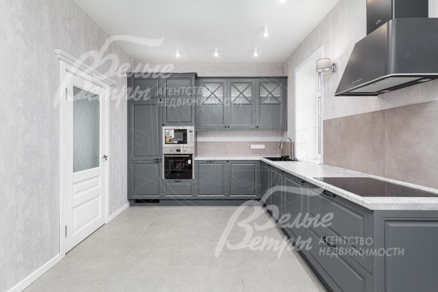 Мебель, оборудование: установлен кухонный гарнитур с техникой: холодильник DEXP, вытяжка Elikor, электрическая варочная панель DEXP, электрический духовой шкаф DEXP, посудомоечная машина 60см, микроволновая печь DEXP, стиральная машина Indesit. Установлена вся необходимая мебель: стильный диван в гостиной, обеденный стол со стульями, кровать в мастер-спальне, оборудованы гардеробные, а также есть кровати в других спальнях.