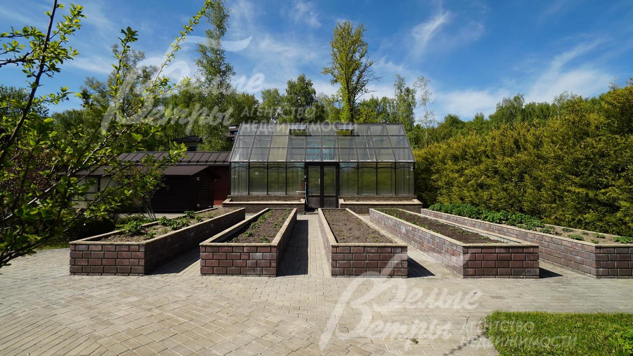 Общая площадь строений: 917 м2 (Дом с бассейном 772 кв.м + Гараж с квартирой персонала 145 кв.м + теплица 39 кв.м)