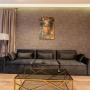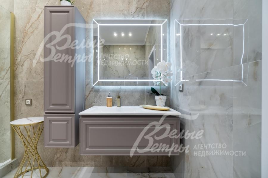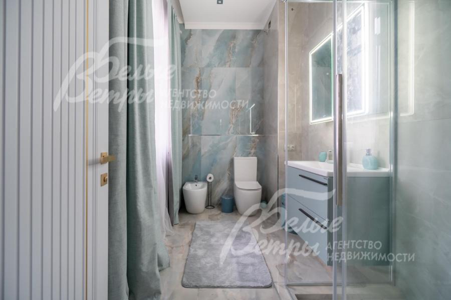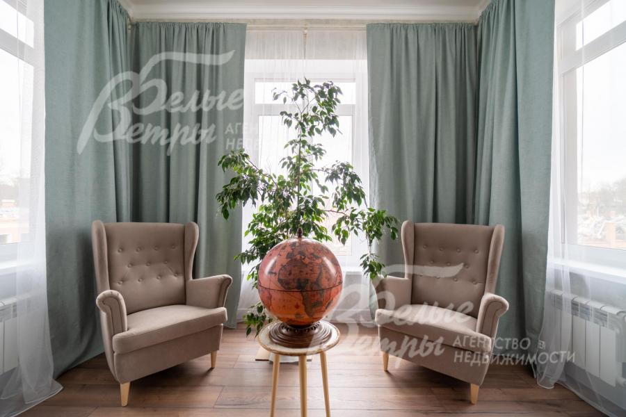 Мебель, оборудование: установлена современная кухня с полубарной стойкой и всей необходимой бытовой техникой, меблированы все помещения и спальни. Занавески и шторы на окнах, установлены светильники и люстры. Санузлы оснащены под ключ.