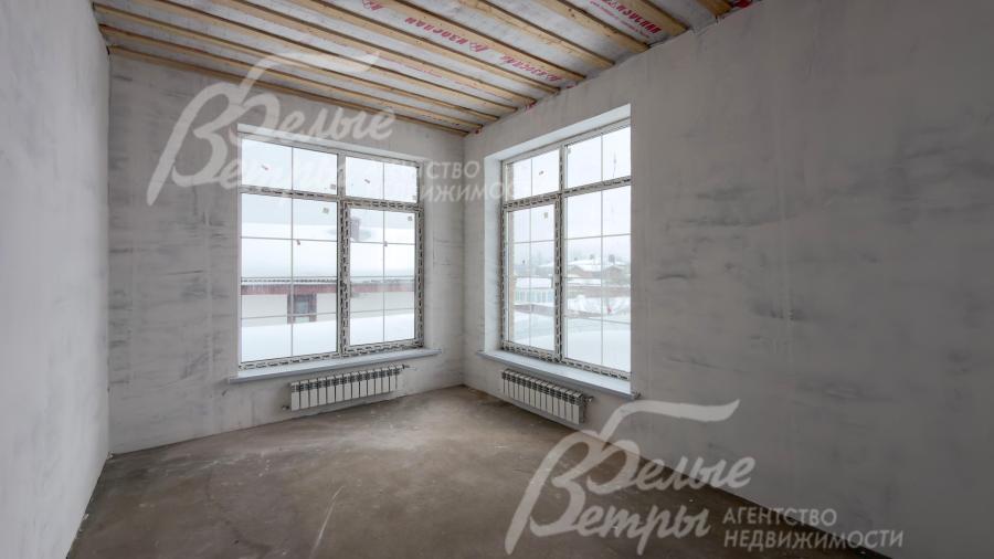 В доме установлены внутренние стены, окна, в том числе панорамные