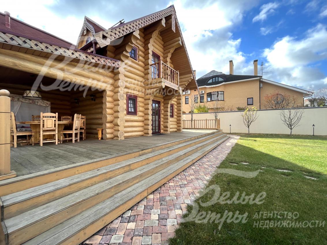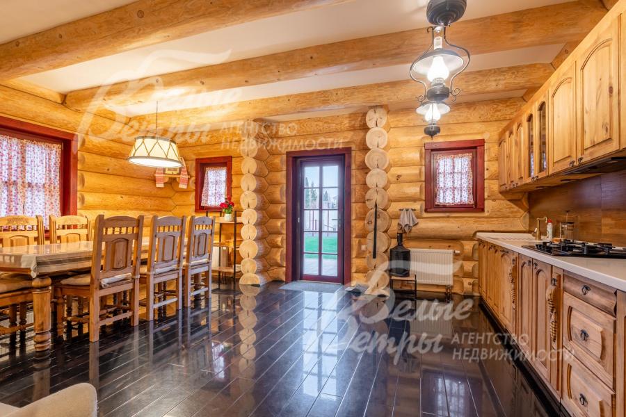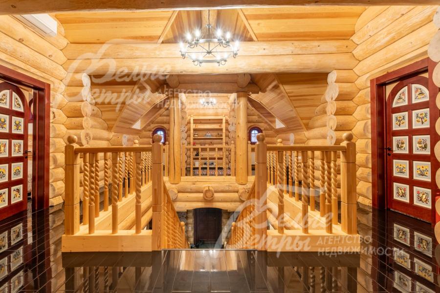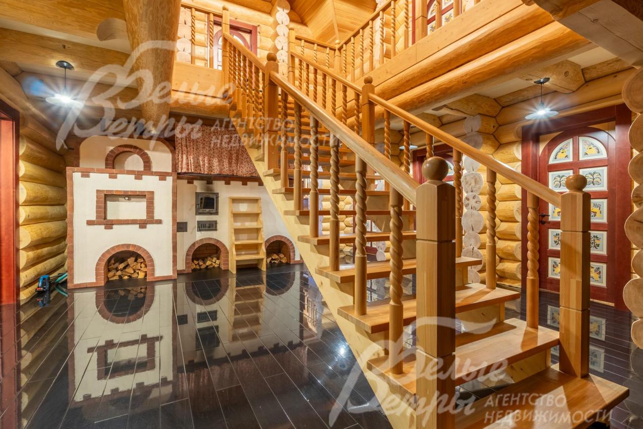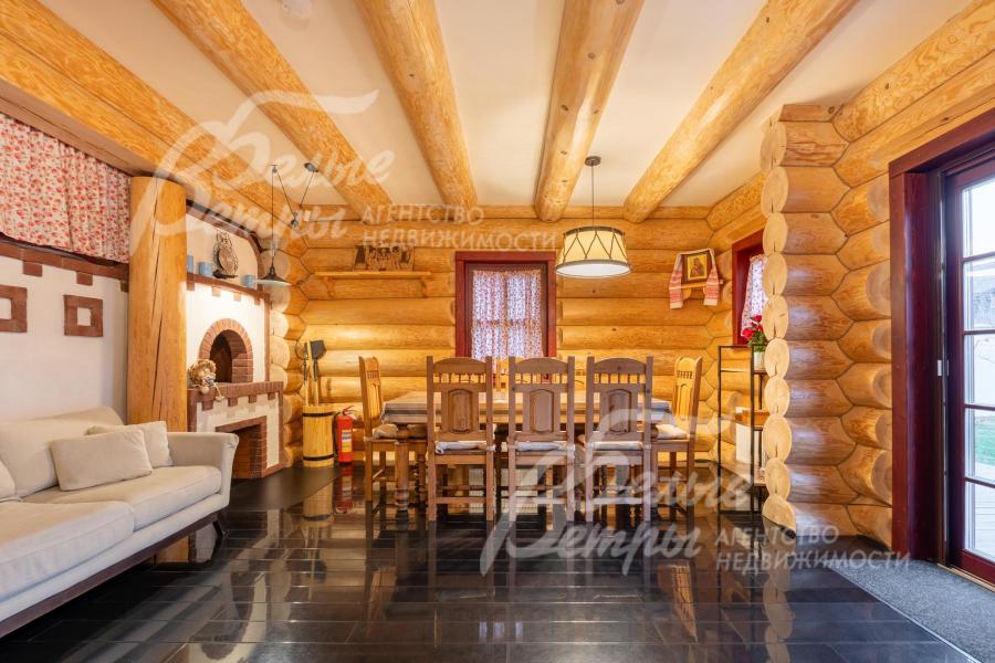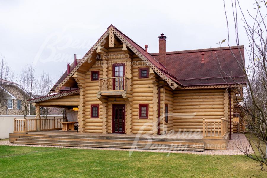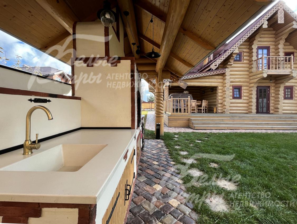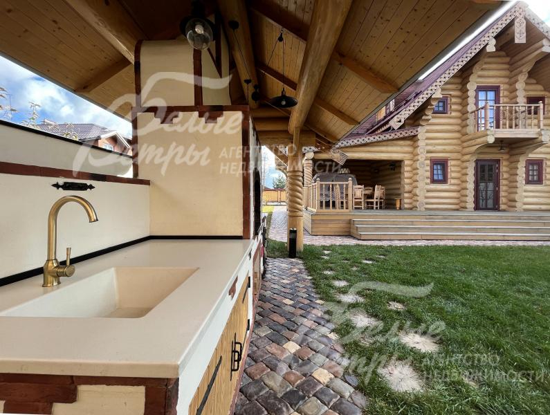 Дом-сказка! Выполненный в старорусской стилистике, из бревна вологодской сосны ручной рубки и шлифовки. При этом дом отвечает всем современным требованиям! При строительстве и отделке применялись лучшие и новейшие материалы и технологии. Все спальни – с собственными санузлами, гардеробными и балконами. Применена эффективная звукоизоляция. Практически все элементы дома делались по индивидуальным проектам, декор ручной работы и художественная роспись, элитные импортные отделочные материалы. В доме настоящая русская печь с большой лежанкой. Отдельно стоящая баня и дровяная чан-бочка. Уличная кухня под навесом в старорусском стиле с разными способами приготовления блюд. Аутентичные беседка и колодец. Участок находится в обжитом коттеджном посёлке в 300 м от леса и каскада прудов.