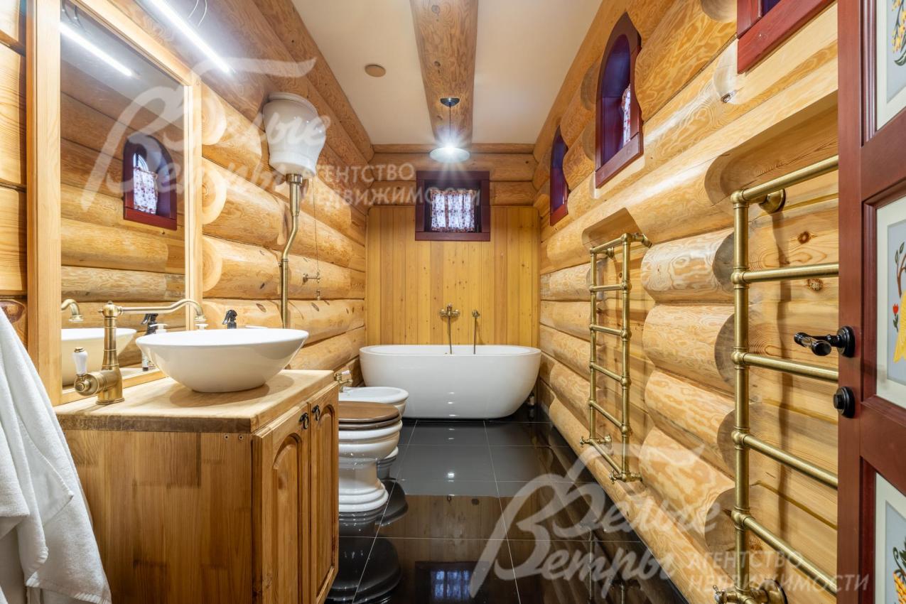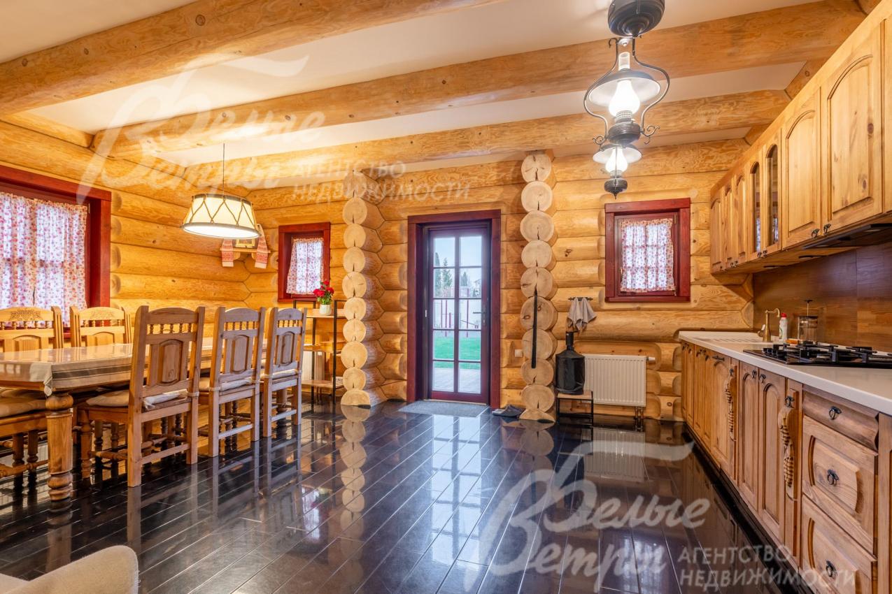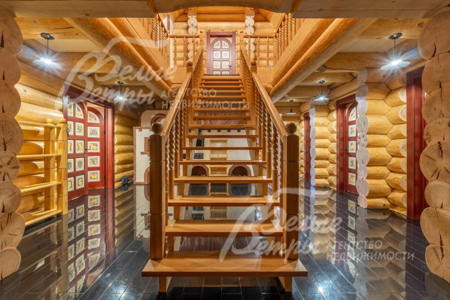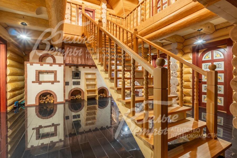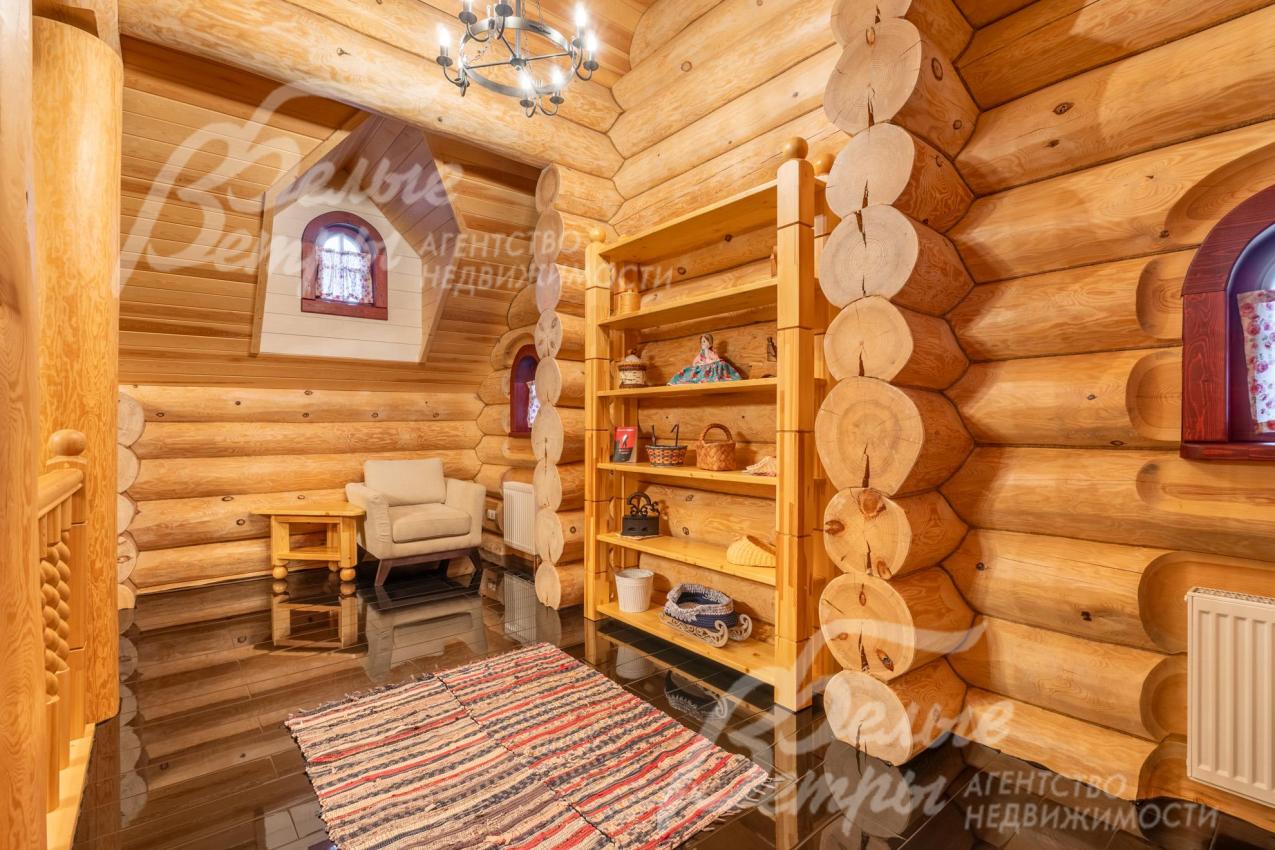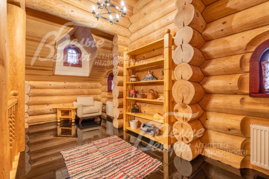 Дом-сказка! Выполненный в старорусской стилистике, из бревна вологодской сосны ручной рубки и шлифовки. При этом дом отвечает всем современным требованиям! При строительстве и отделке применялись лучшие и новейшие материалы и технологии. Все спальни – с собственными санузлами, гардеробными и балконами. Применена эффективная звукоизоляция. Практически все элементы дома делались по индивидуальным проектам, декор ручной работы и художественная роспись, элитные импортные отделочные материалы. В доме настоящая русская печь с большой лежанкой. Отдельно стоящая баня и дровяная чан-бочка. Уличная кухня под навесом в старорусском стиле с разными способами приготовления блюд. Аутентичные беседка и колодец. Участок находится в обжитом коттеджном посёлке в 300 м от леса и каскада прудов.