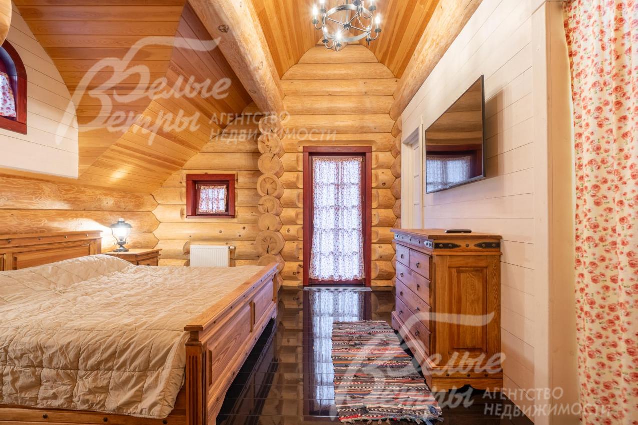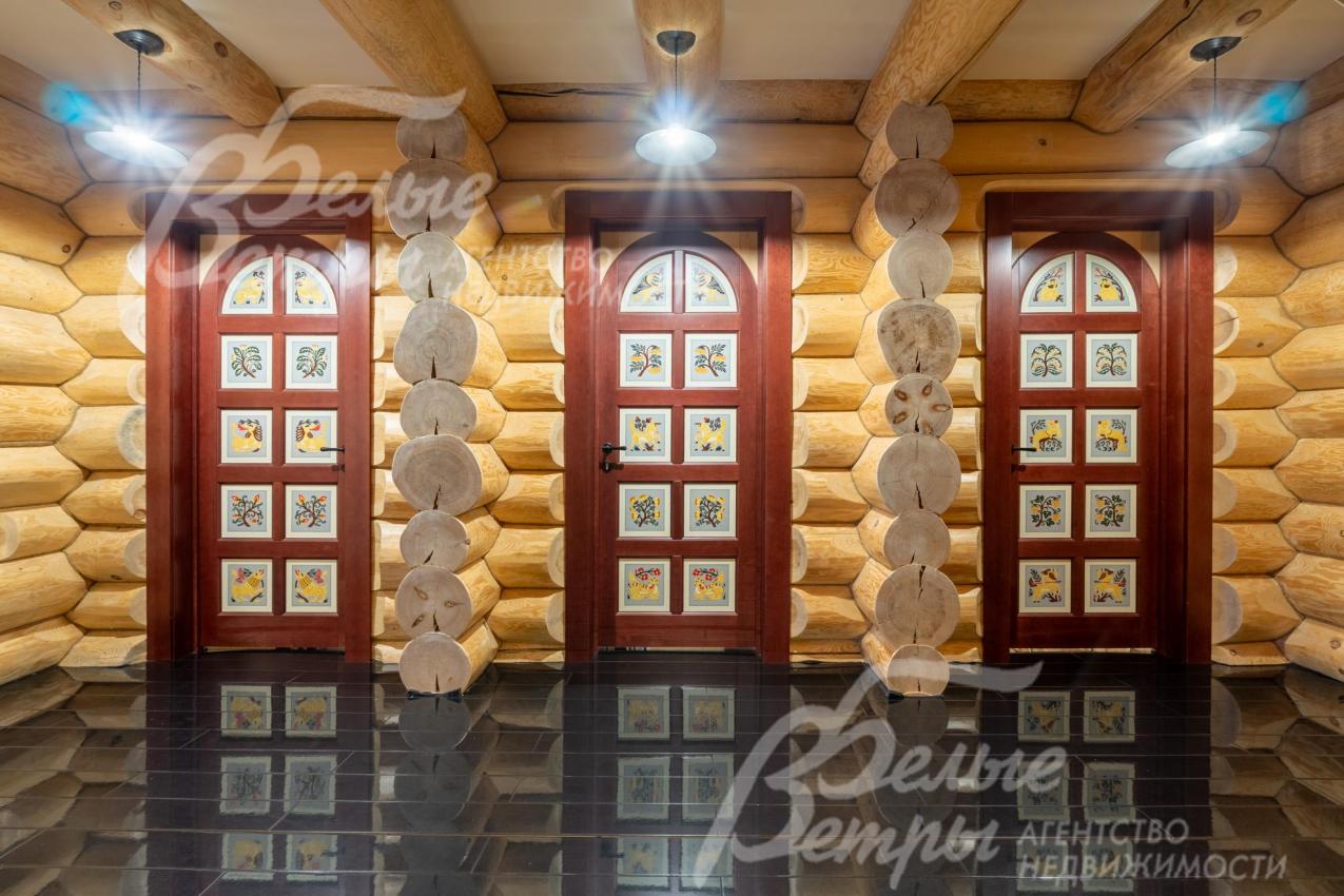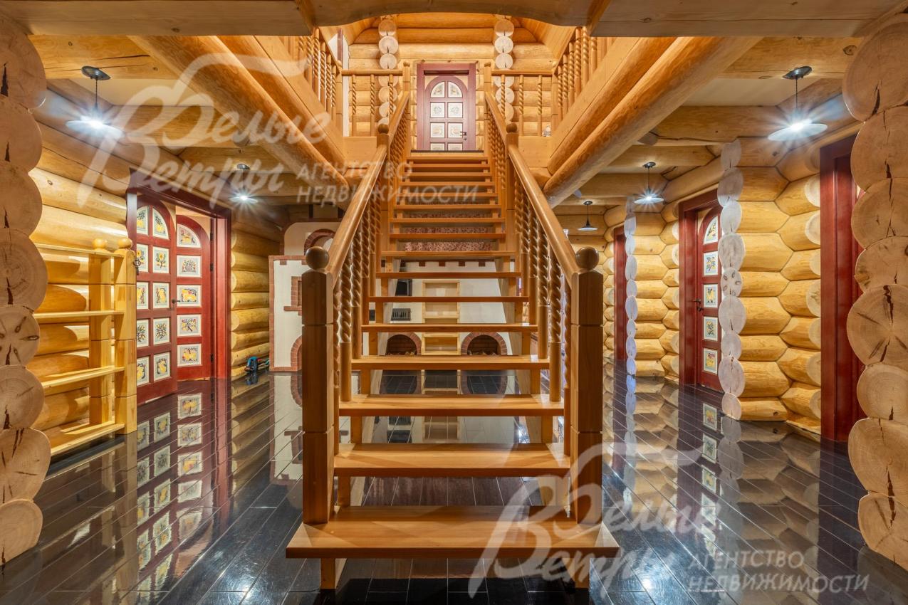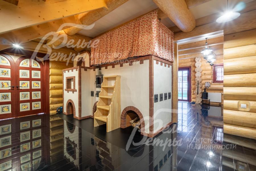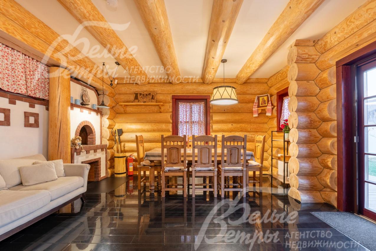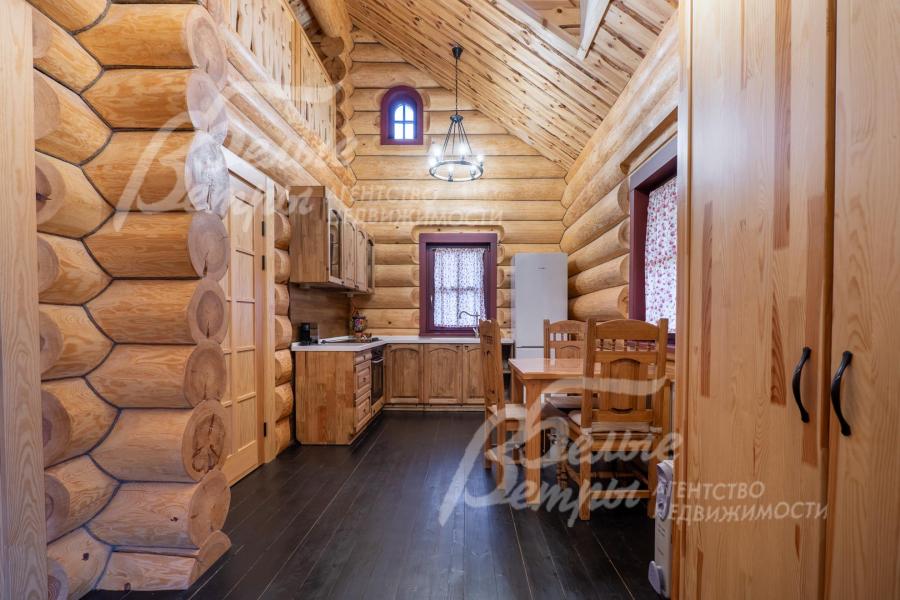 Дом-сказка! Выполненный в старорусской стилистике, из бревна вологодской сосны ручной рубки и шлифовки. При этом дом отвечает всем современным требованиям! При строительстве и отделке применялись лучшие и новейшие материалы и технологии. Все спальни – с собственными санузлами, гардеробными и балконами. Применена эффективная звукоизоляция. Практически все элементы дома делались по индивидуальным проектам, декор ручной работы и художественная роспись, элитные импортные отделочные материалы. В доме настоящая русская печь с большой лежанкой. Отдельно стоящая баня и дровяная чан-бочка. Уличная кухня под навесом в старорусском стиле с разными способами приготовления блюд. Аутентичные беседка и колодец. Участок находится в обжитом коттеджном посёлке в 300 м от леса и каскада прудов.