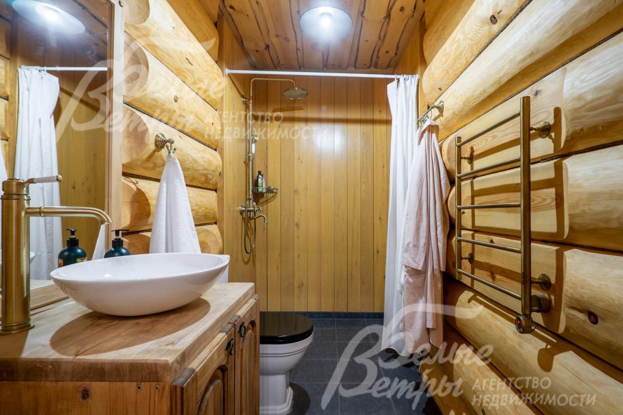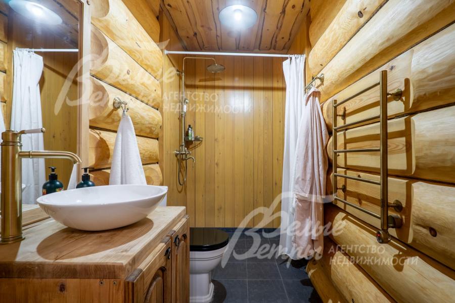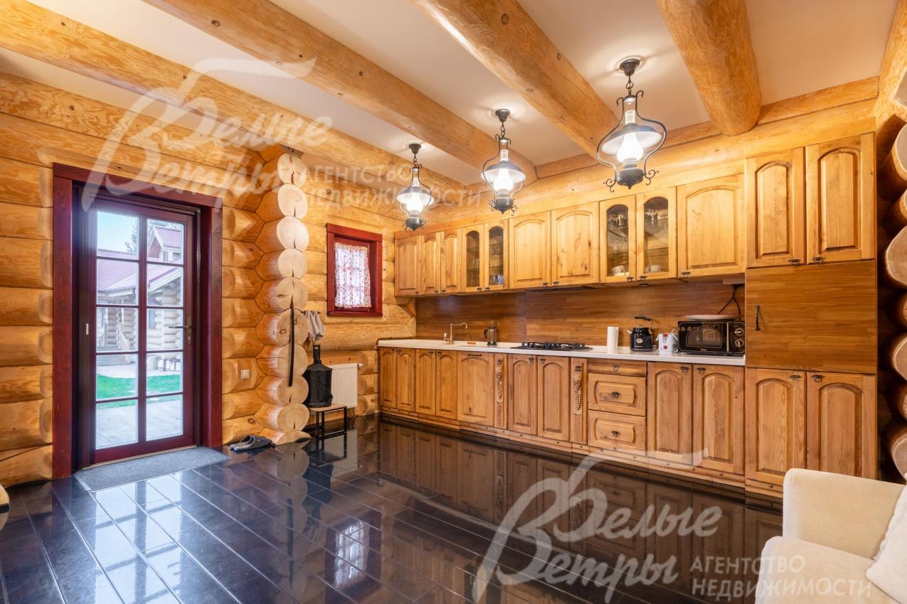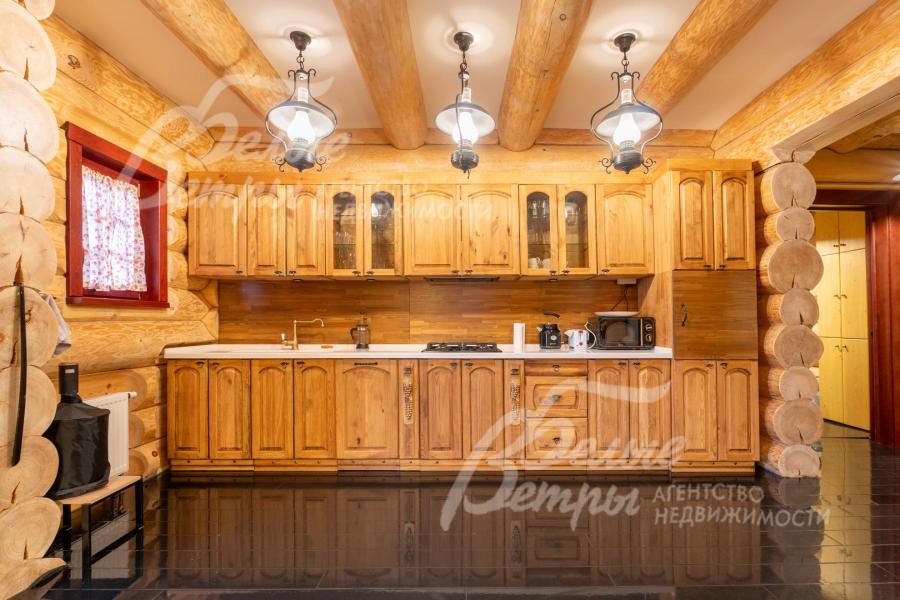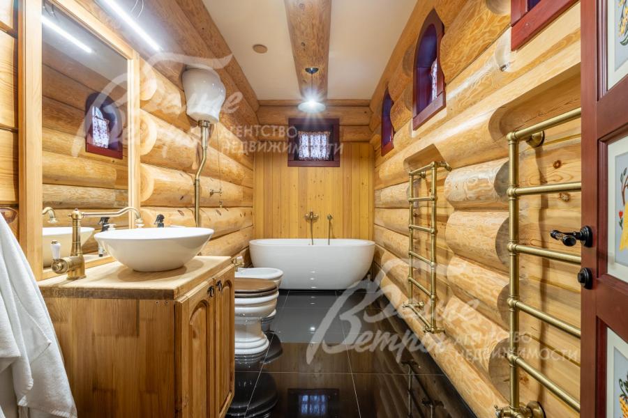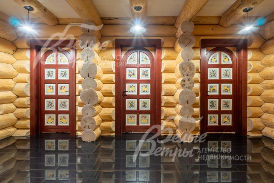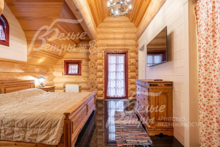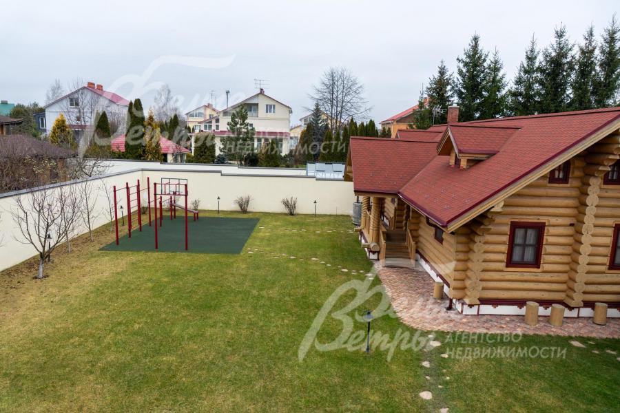 Дом-сказка! Выполненный в старорусской стилистике, из бревна вологодской сосны ручной рубки и шлифовки. При этом дом отвечает всем современным требованиям! При строительстве и отделке применялись лучшие и новейшие материалы и технологии. Все спальни – с собственными санузлами, гардеробными и балконами. Применена эффективная звукоизоляция. Практически все элементы дома делались по индивидуальным проектам, декор ручной работы и художественная роспись, элитные импортные отделочные материалы. В доме настоящая русская печь с большой лежанкой. Отдельно стоящая баня и дровяная чан-бочка. Уличная кухня под навесом в старорусском стиле с разными способами приготовления блюд. Аутентичные беседка и колодец. Участок находится в обжитом коттеджном посёлке в 300 м от леса и каскада прудов.