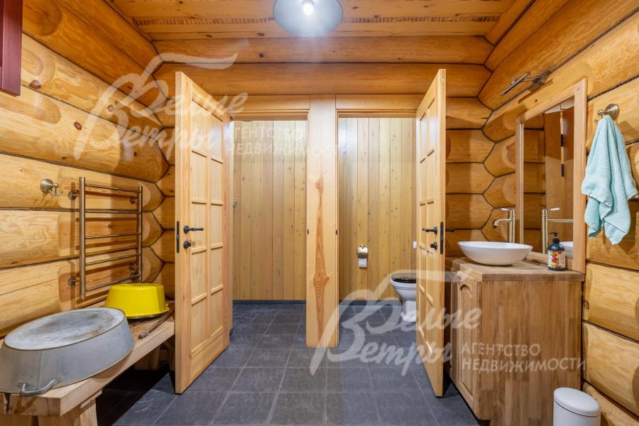 Дополнительные строения: 1. Баня 90 кв.м из бревна в едином архитектурном стиле с основным домом, с банным чаном, полностью оборудована и меблирована (отделка и мебель соответствует стандартам главного дома). Планировка бани: крытое крыльцо 12,5 кв.м, кухня-столовая 14 кв.м, спальня 9 кв.м, парная 6 кв.м, купельная 7 кв.м, комната отдыха 14 кв.м с обливным ведром и душевой (за отдельной дверью), туалет 3 кв.м санузел с душевой 4 кв.м, котельная 4 кв.м;