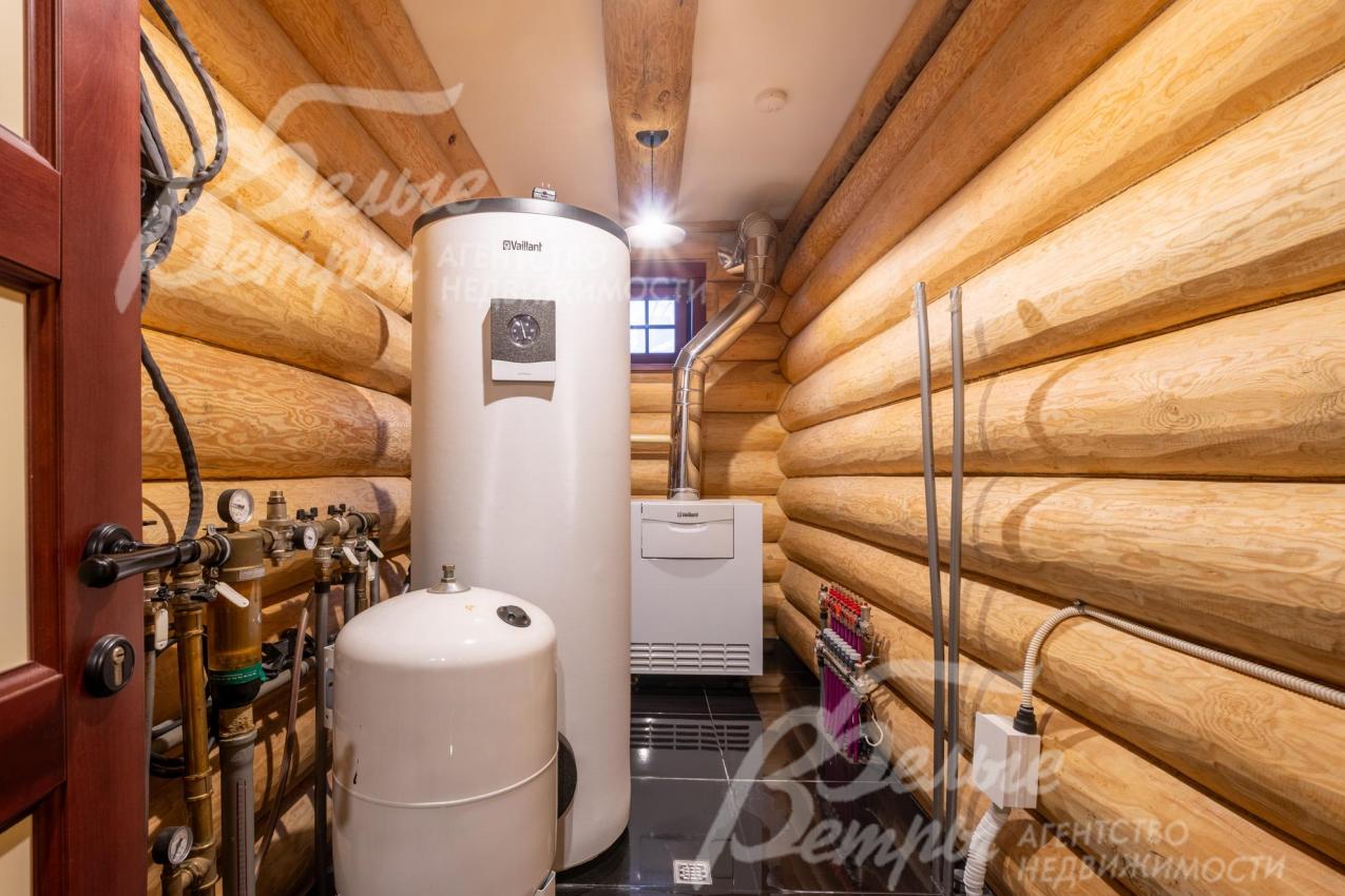 Инженерное обеспечение: все коммуникации разведены под ключ. Система отопления – на базе напольного котла газового Valliant (Германия), медная обвязка, также в системе использованы трубы водоснабжения и отопления Rehau и циркуляционные насосы Grundfos. Горячее водоснабжение – через накопительный бойлер Valliant (Германия). Интегрирована система безопасности.