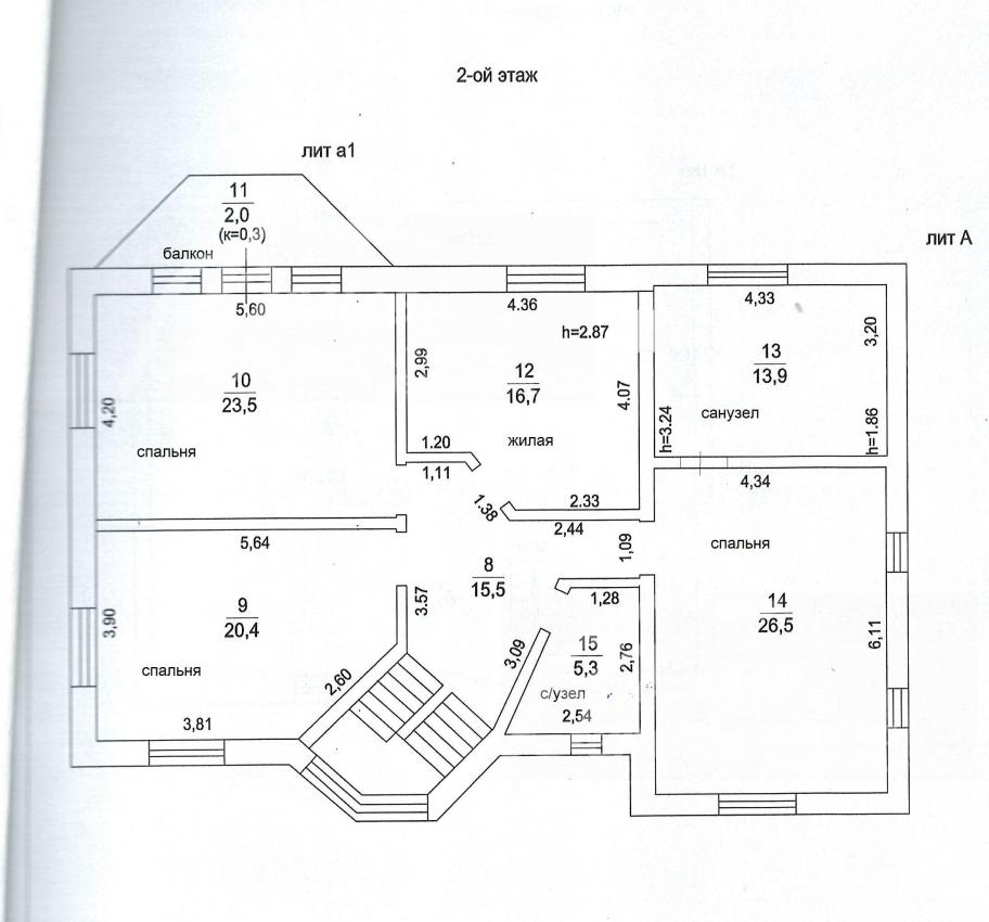 2-ой этаж: спальня 23.5 кв.м, спальня 20.4 кв.м, спальня 26.5 кв.м, жилая 17 кв.м, санузел 14 кв.м, санузел 5 кв.м, коридор 15.5 кв.м, балкон.
