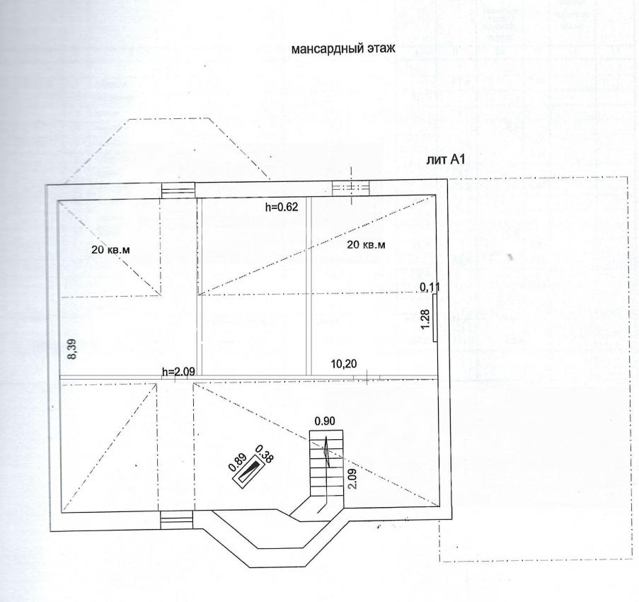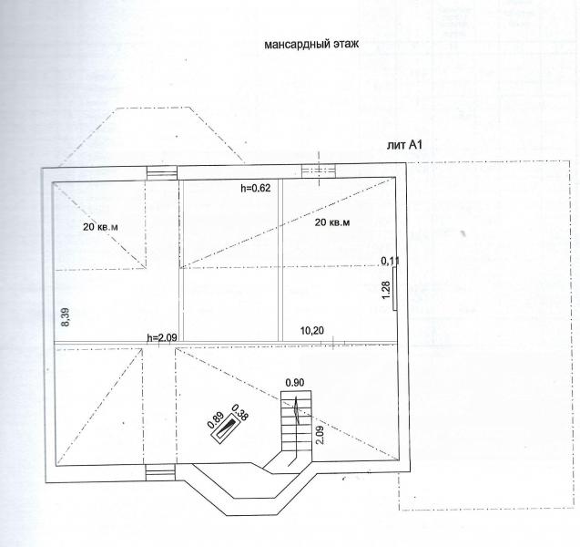 3-ий этаж: мансарда: 2 комнаты по 20 кв.м, кладовая 15 кв.м