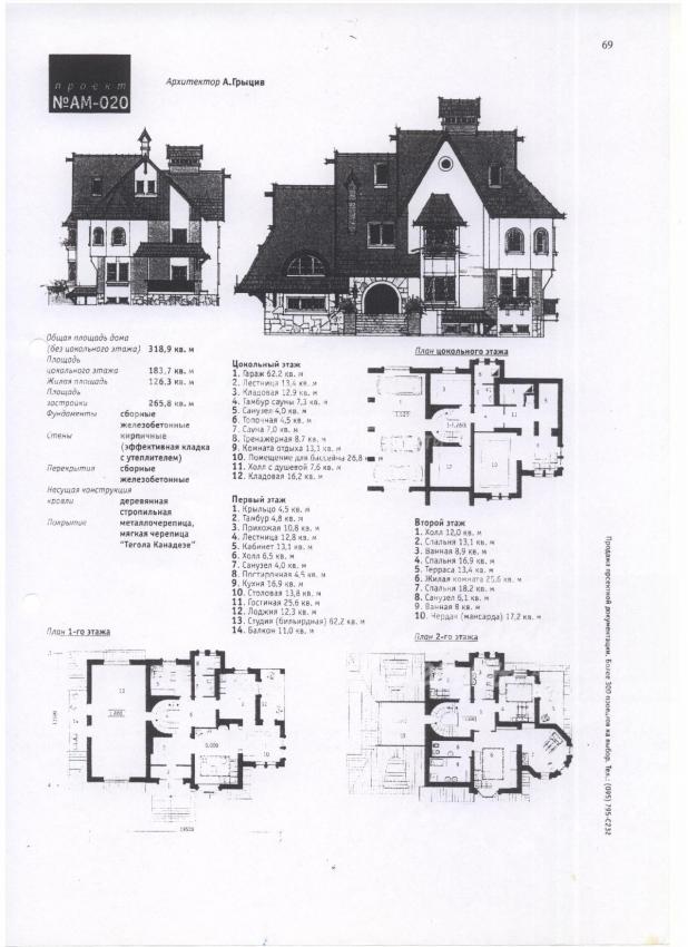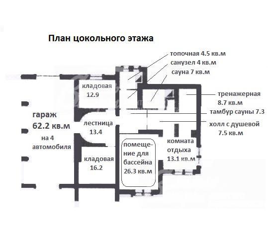 Цоколь: бойлерная, сауна, комната отдыха, бильярдная, погреб, тренажерный зал, раздевалка, с/узел