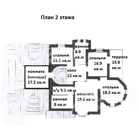 2-ой этаж: большая комната над гаражом 50 кв.м, холл, 2 спальни, гостиная-библиотека, с/узел