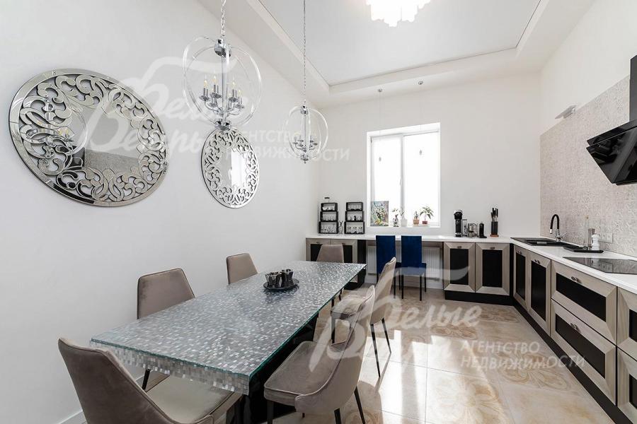 Мебель, оборудование: дом обставлен абсолютно новой мебелью итальянского и российского производства. Установлен кухонный гарнитур со встроенной техникой ведущих производителей. Обеденный стол на 6 персон со стульями. Во всех спальнях есть кровати и тумбы. Везде шторы, тюль. Красивые люстры.