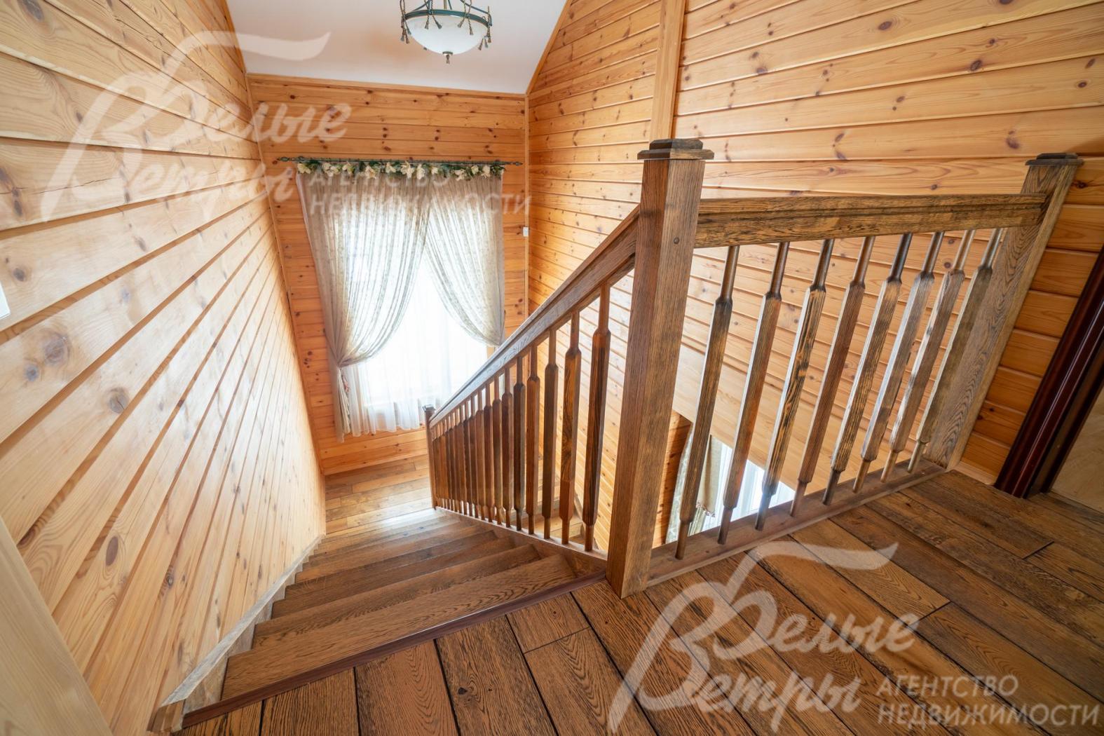 На второй этаже ведёт лестница из массива дуба