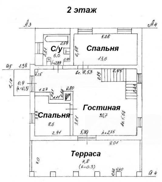 2-ой этаж: гостиная 33 кв.м, с/узел 6.6 кв.м, две спальни, видовая терраса на южную сторону 26 кв.м