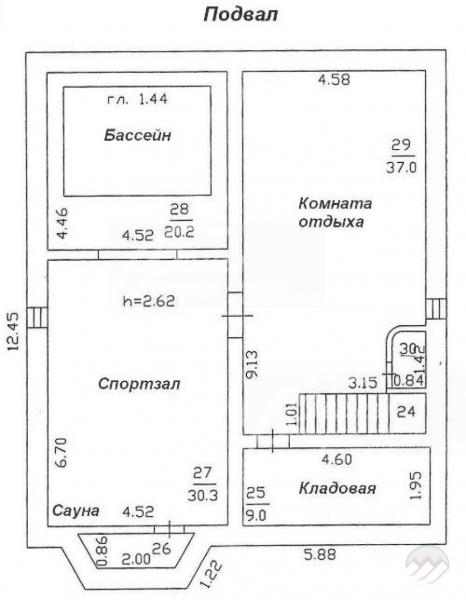 Цоколь: комната отдыха с бильярдным столом и баром 37 кв.м, с/узел, кладовая 9 кв.м, зона бассейна с тренажерами, сауной и душевой; винный погреб.